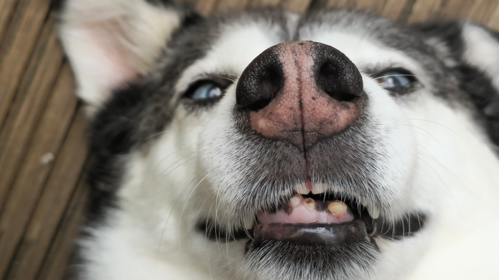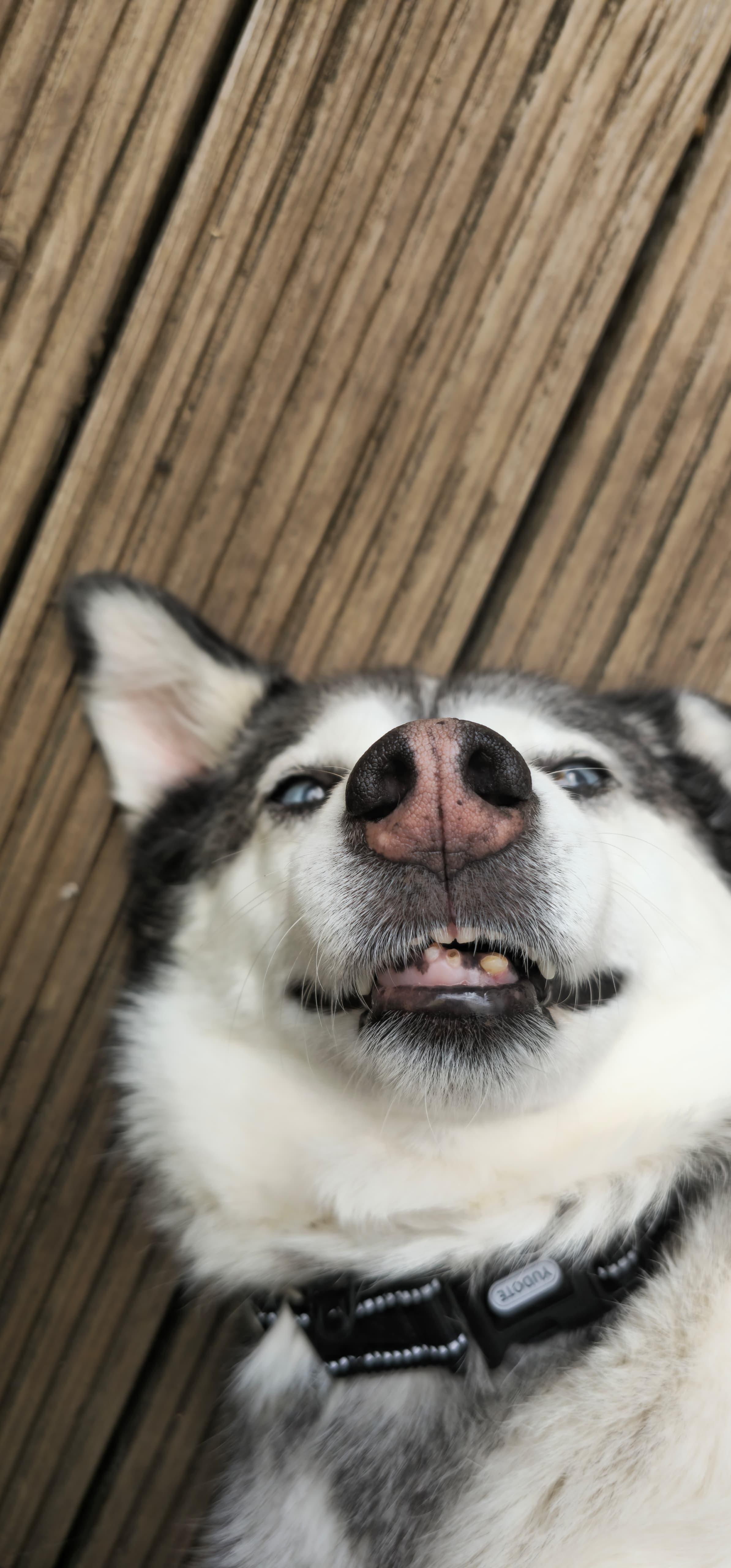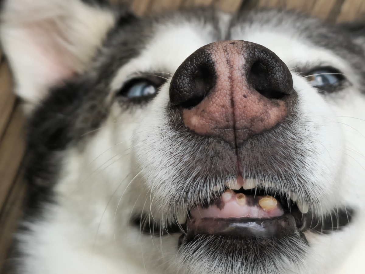 Hera lebte fünf Jahre lang im Freilauf des Shelters in Rumänien – gemeinsam mit vielen anderen Hunden. Diese lange Zeit hat deutliche Spuren hinterlassen, vor allem an ihren Zähnen.