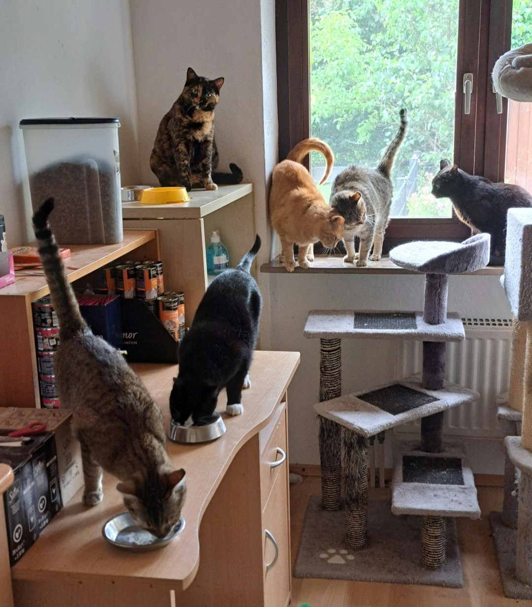Diese Katzen dürfen bei mir für immer bleiben. Zusätzlich nehme ich immer wieder Pflegekatzen, verletzte oder notleidende Tiere auf, die dringend Hilfe brauchen.
