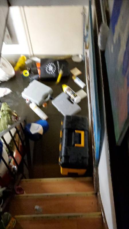 The water reached such a high level there was only 3 steps of the staircase that leads upstairs
