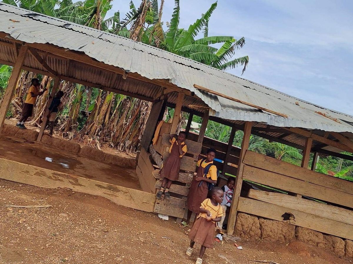 We are raising funds to help the Reliance Charity Foundation with construction of a six-unit classroom block for the community in Nkwantapong to replace this current structure.