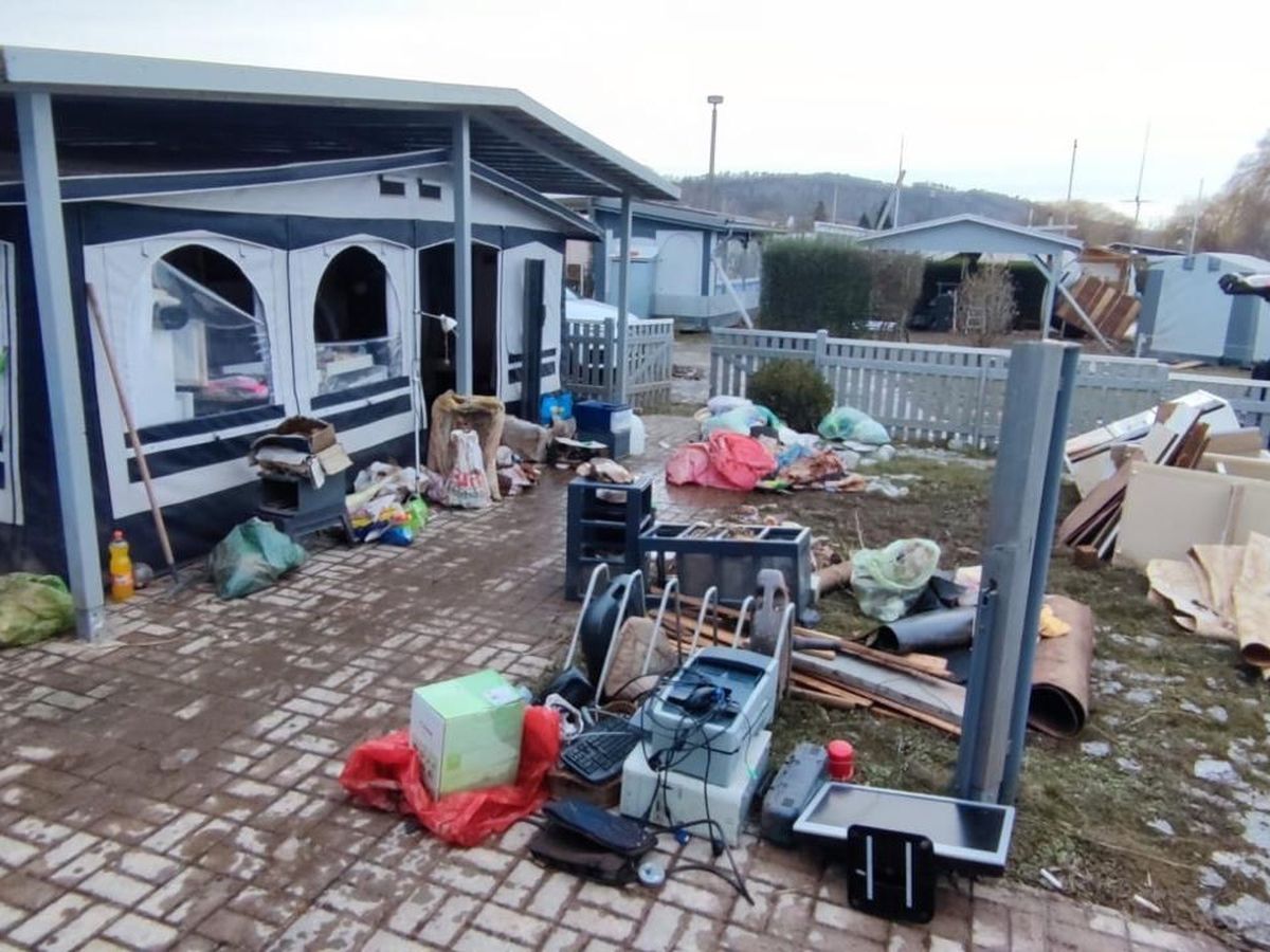 Inzwischen ist das Wasser abgelaufen und Diana hat mit den Aufräumarbeiten angefangen. Das war ein Stück harte Arbeit aber mit Euren Spenden geht es ab jetzt an den Wiederaufbau. Ob der komplett leergeräumte und vom Schlamm befreite Wohnwagen an sich gerettet werden kann, steht in den Sternen, zunächst stehen Dinge wie Strom- und Wasserversorgung, Reparatur von Zaun und Überbau sowie ein neuer Boden und Mobiliar im Vorzelt an, um dort überhaupt wieder bewohnbarem Raum zu schaffen (da war nichts mehr zu retten).