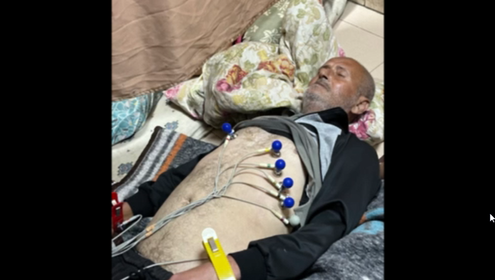 This is my dear father. Since the beginning of the war, he has suffered from shortness of breath due to airstrikes and internationally prohibited white phosphorus. He endured nine months of war, and then all his respiratory arteries became blocked. He went to the hospital hoping to receive a nebulizer or a respirator, but there was no such thing as a hospital—there was no electricity. He was struggling to breathe and urgently needed intensive care to check his vital functions and improve his oxygen levels. Due to the large number of wounded and martyrs, we couldn't find a bed or a place for him, and we couldn't even find a doctor to explain his critical condition.
