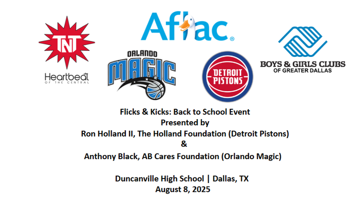 The Flicks & Kicks: Back to School Event is an annual, community-focused initiative led by two rising NBA stars and proud Dallas natives—Ron Holland II of the Detroit Pistons and Anthony Black of the Orlando Magic. Now in its second year, this event serves as a powerful platform to uplift children and families by ensuring they are equipped—physically, mentally, and emotionally—to begin the school year with confidence. Building on the success of last year’s event, where nearly 100 students received backpacks, supplies, and support, Flicks & Kicks returns with expanded resources and reach. This year’s partnership between the Holland and Black Foundations reflects both athletes’ deep commitment to giving back to their hometown communities and investing in the next generation of leaders, scholars, and athletes.