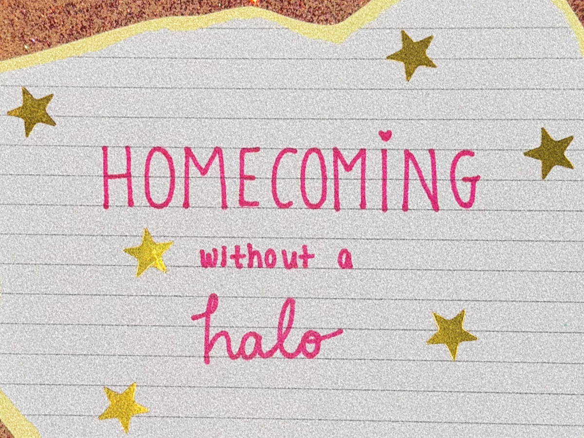 'Homecoming Without A Halo' is told through the distorted perspective of our protagonist, Lorna, amidst her move back into her family home. Following a distressing phone call to her father, Lorna leaves behind her promising artistic pursuit in London for her outgrown pink bedroom plastered with reminders of her discarded passions. Lorna quickly establishes that coming back to the very place she was once so desperate to vacate wasn't the best decision after all now that her disillusioned fondness for home neglects to provide her with the flood of comfort she anticipated it would. Filled with anxiety surrounding her family's inevitable curiosity about her reckless derailing of their depiction of her future, and her strained relationship with her father and rivalled brother, Lorna spirals deeper.