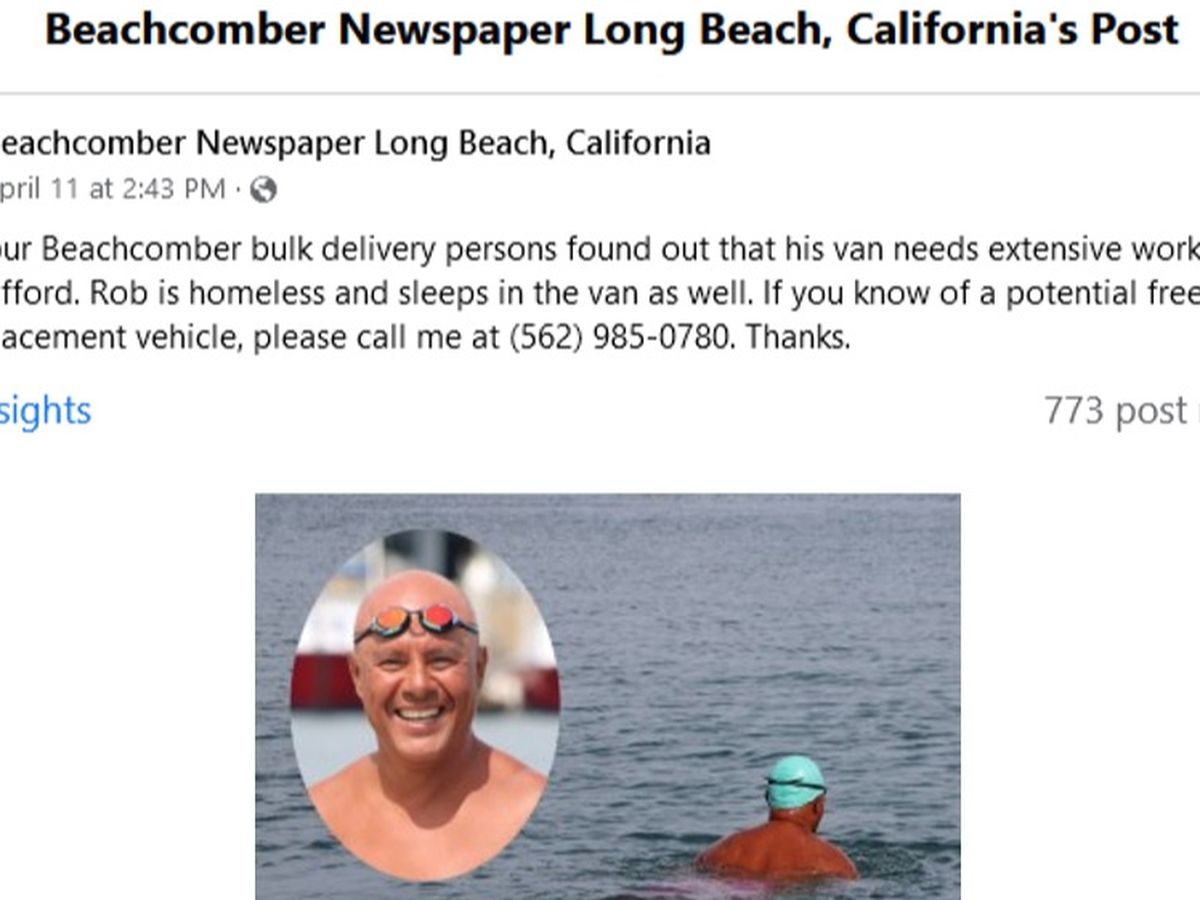 "One of our Beachcomber bulk delivery persons found out that his van needs extensive work that he cannot afford. Rob is homeless and sleeps in the van as well. If you know of a potential free or low-cost replacement vehicle, please call me at (562) [phone redacted]. Thanks."