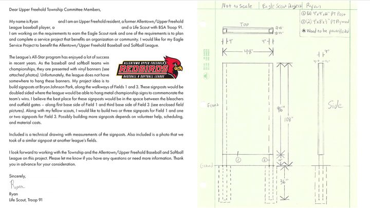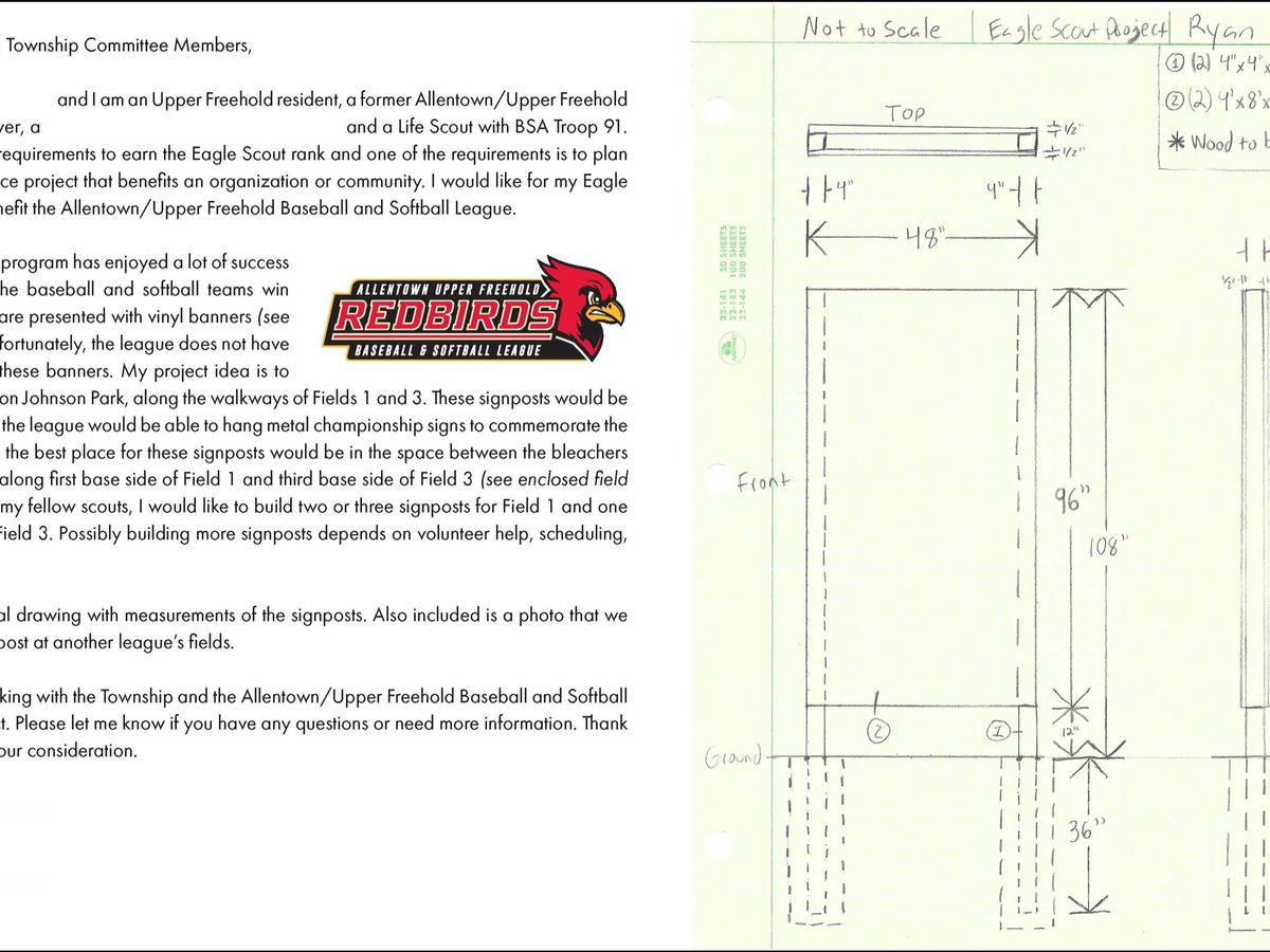 For the Eagle Scout project, the requirement is that I plan, develop, and give leadership to others in a service project helpful to any religious institution, school, or my community. The project must benefit an organization other than Scouting America (BSA). I have decided to use my project to benefit the Allentown-Upper Freehold Baseball and Softball League.