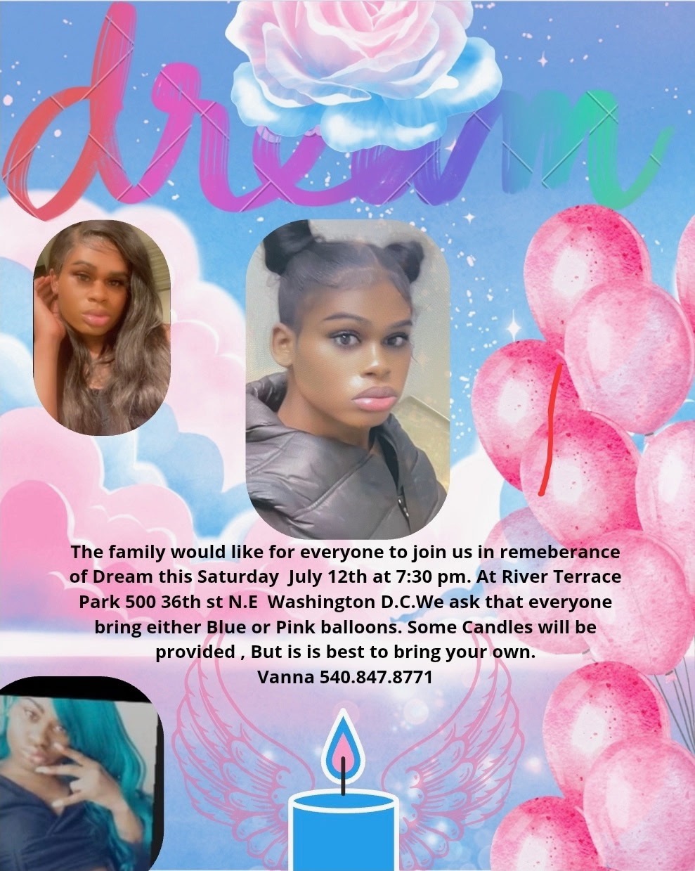 Let us keep Dream’s spirit alive by uplifting her name and sharing her story—SAY HER NAME: DREAM. Your support will help her family heal and remind us all that everyone deserves to live freely and with love.
