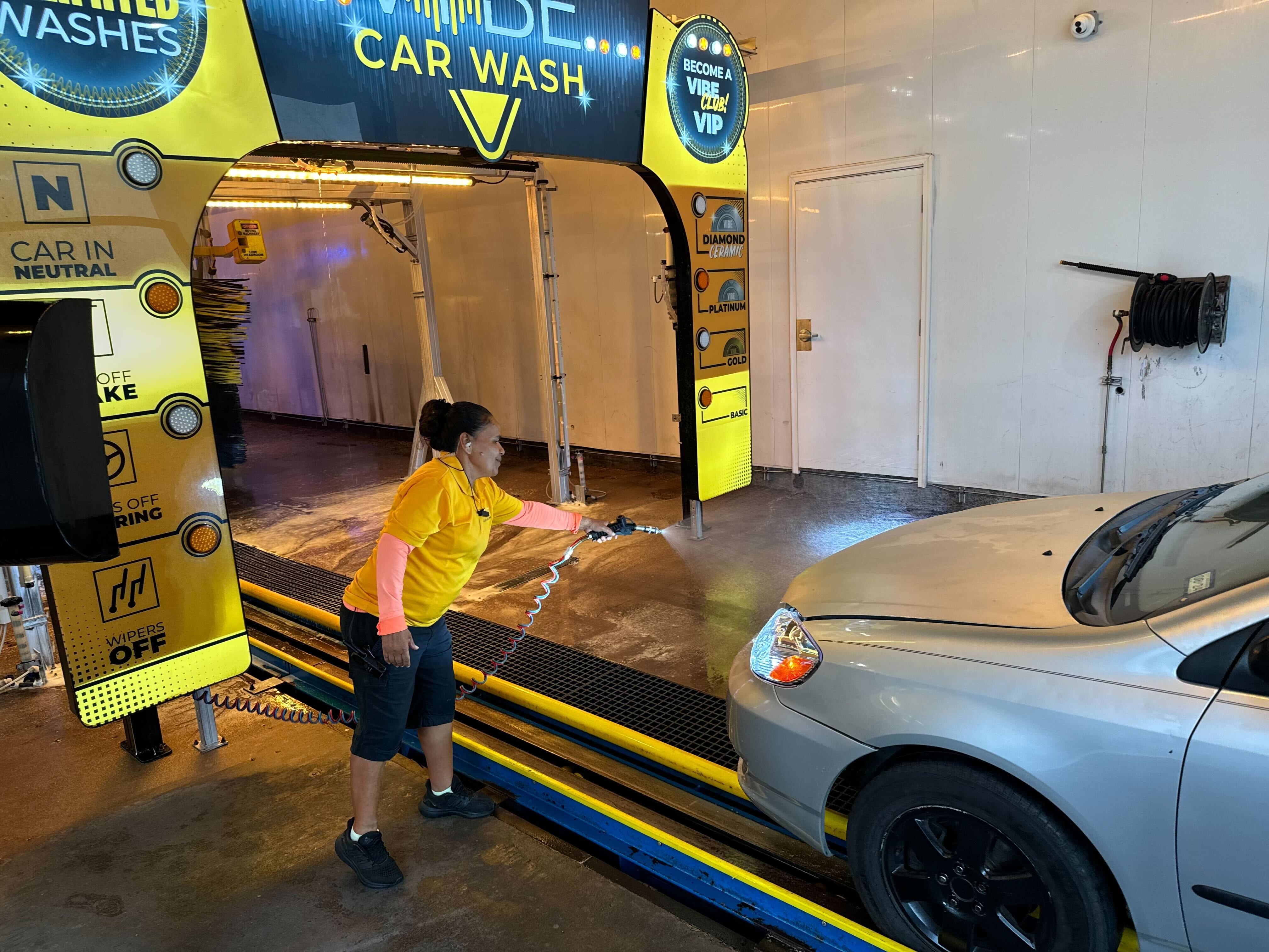 Aide has been in the carwash industry for many years and has become a familiar, friendly face to so many in our community. Her radiant smile, tireless work ethic, and uplifting spirit made every visit to Vibe feel like more than just a stop—it felt like being cared for by someone who truly loved what she did.