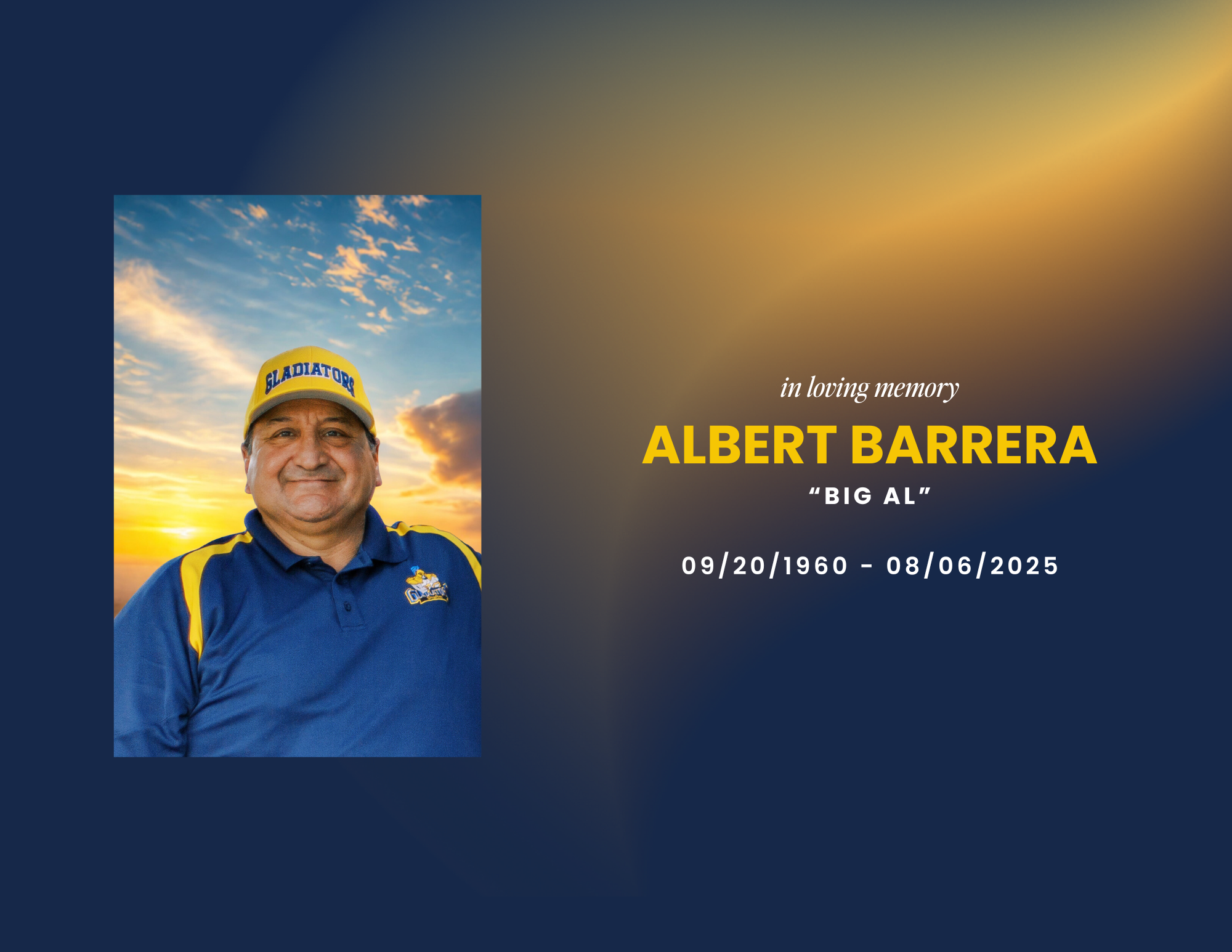 The Barrera Family is touched by the outpouring of love it has received from the community of Shafter for our father, Albert Barrera. As many of you know Big Al, Coach Albert, ascended the stairway to Heaven on August 6th, 2025. And while his presence will be missed on this Earth, we know he went home to be with the Lord in paradise - and in that knowledge, we find peace. In this time of great loss, your love and support has lifted our spirits and provided healing in more ways than one.
