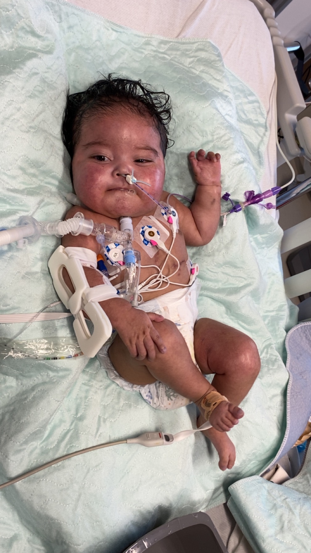 My sweet baby boy, Jordan Neil Bullcoming, was born on Dec 6th 2024 with a heart condition called heterotaxy, where his heart and organs were formed abnormally. His whole life, he’s been hospitalized, had 3 open-heart surgeries, and 4 regular surgeries for his lung, 2 for catheterization, and 1 for a G-tube, battling for his little life.