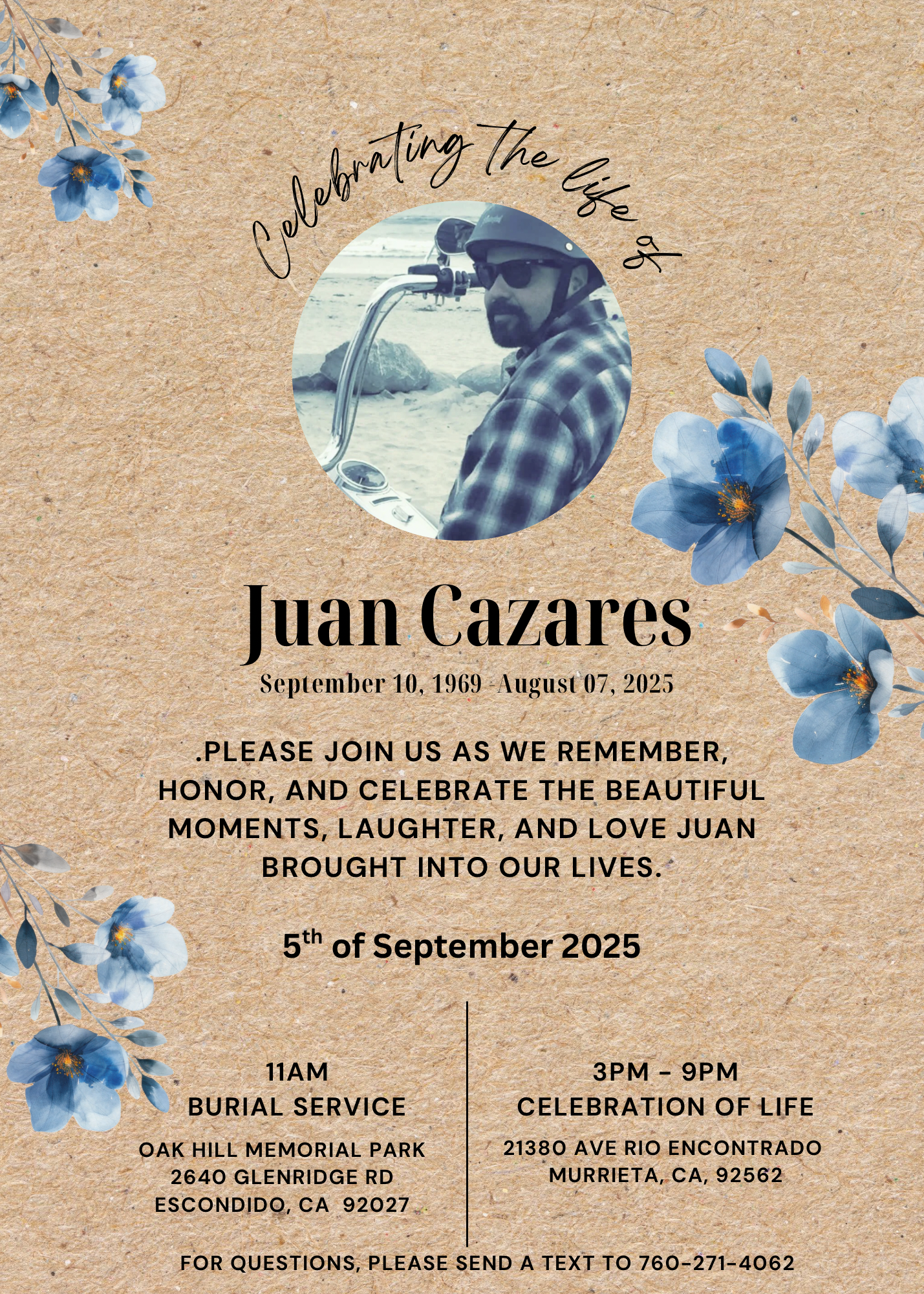 As we grieve, many people have reached out asking how they can help. We’re incredibly grateful for all the love, prayers, and support. If you’d like to contribute toward helping with Tio Juan’s memorial services, we truly appreciate it. Your kindness means the world to our family and his kids!