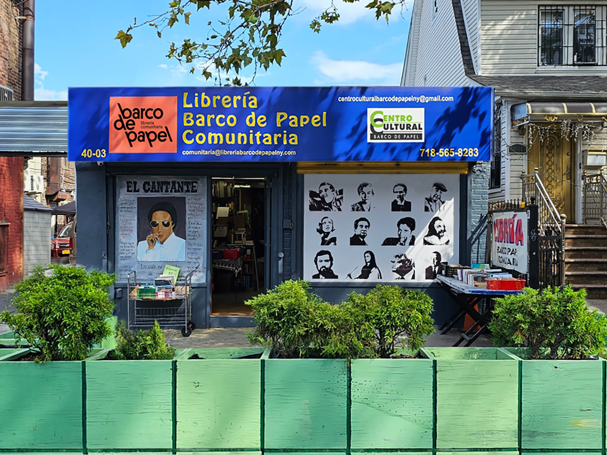 Ubicados en la esquina de la calle 80 y Roosevelt Avenue, en el corazón de Queens, servimos a una comunidad de lectores inmigrantes de todos los países del continente americano. Mucha gente llega a Barco de Papel para rellenar las bibliotecas que dejaron atrás cuando migraron a los Estados Unidos. Padres y madres vienen para darles a sus hijos la oportunidad de leer en un segundo o incluso tercer idioma. Y también ofrecemos un “tercer espacio” para artistas y lectores apasionados en el barrio más diverso de todo el país.