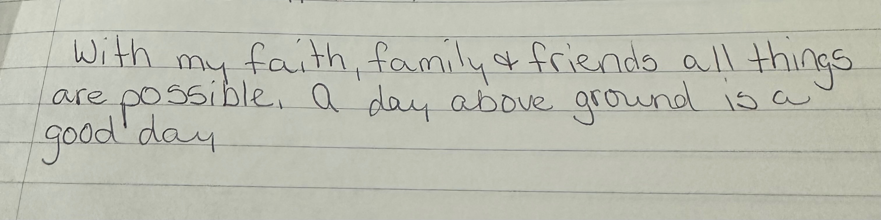 “with my faith, family, and friends, all things are possible… a day above ground is a good day.”