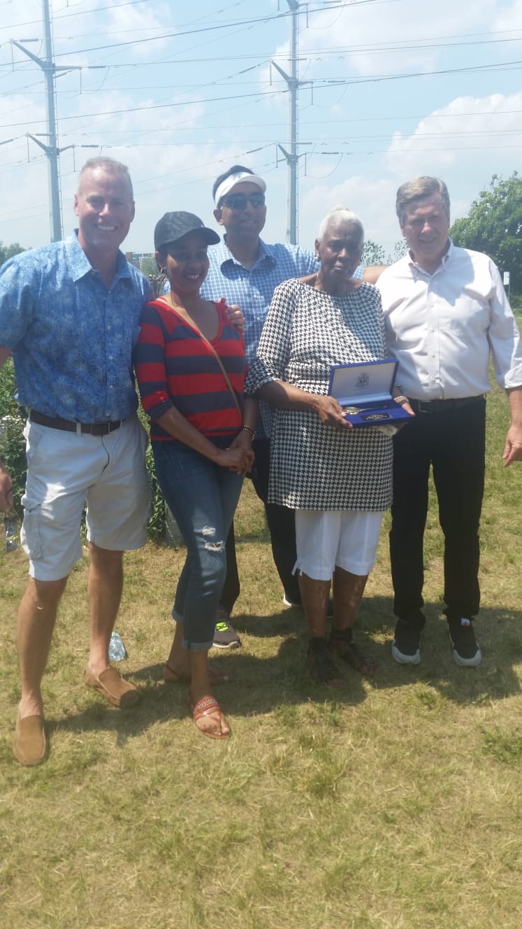 Her lifelong dedication was formally recognized many times. In 2009, Pat received the Agnes Macphail Award, an annual honour that recognizes individuals in East York who embody the causes Agnes Macphail championed in her distinguished career—equity, social justice, and community service. On June 30, 2018, she was further recognized when Mayor John Tory presented her with a Key to the City on Pat Moore Drive in Thorncliffe Park. The City also permanently honoured her legacy by naming Pat Moore Drive after her—ensuring her contributions will be remembered for generations.