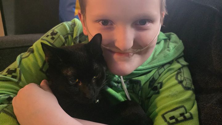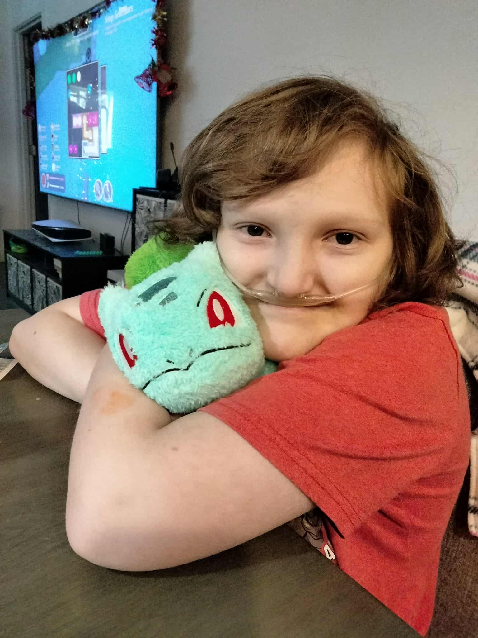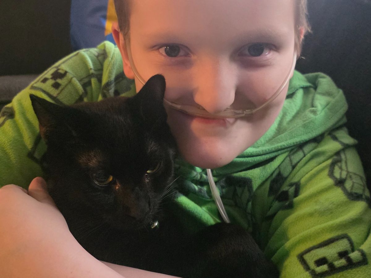 He loves his kitties, spending time with his siblings, and learning about animals—especially chameleons. Some of his favorite things are Stitch, Pokémon, playing video games, and Bingo from the show Bluey. Those little joys mean the world to him and to us.