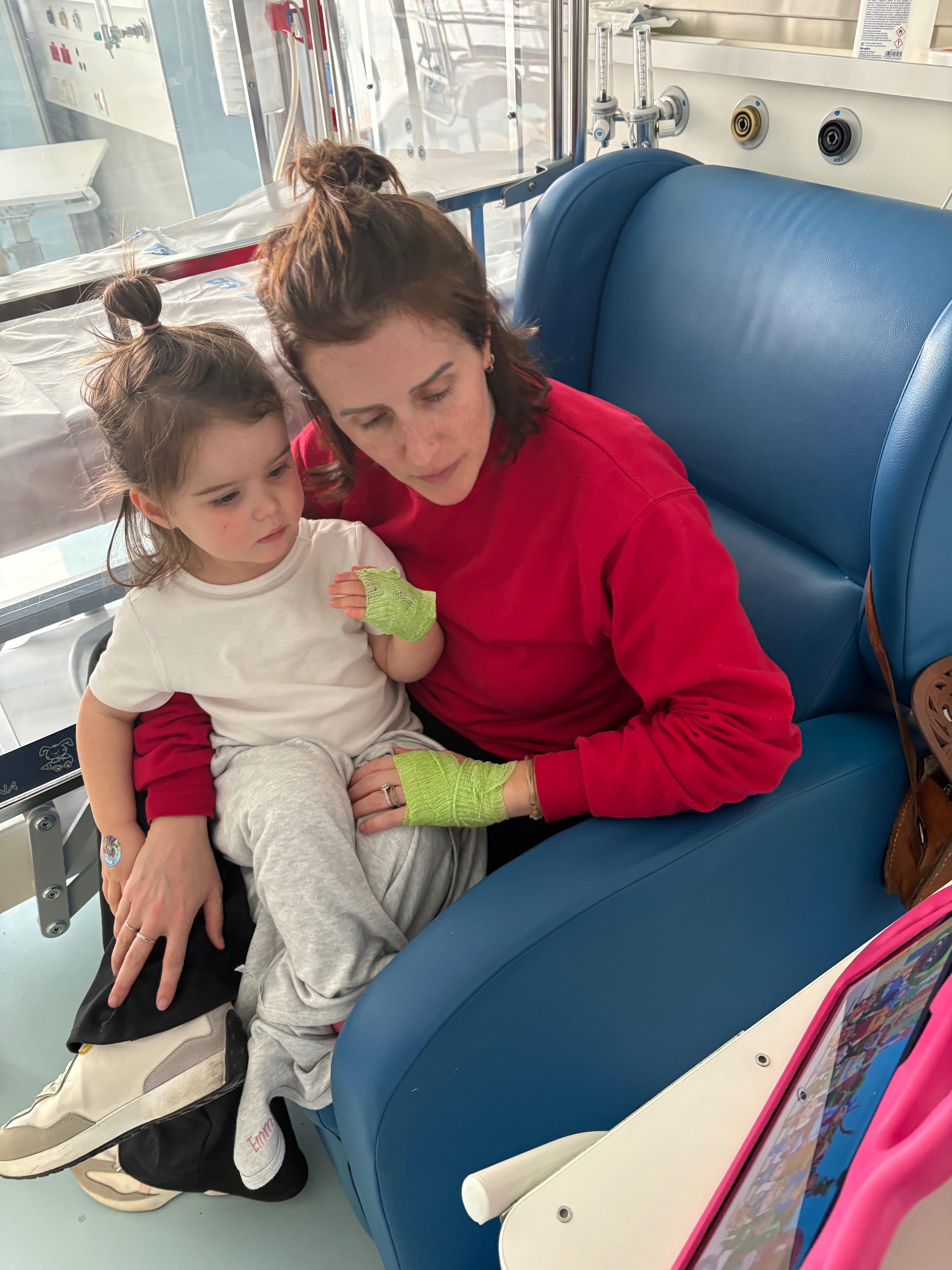 Her parents, Jenny and Pablo, have been by her side every moment, taking turns staying with her in the hospital around the clock while also caring for their young son, Ollie, at home. This has required both of them to step away from work entirely.