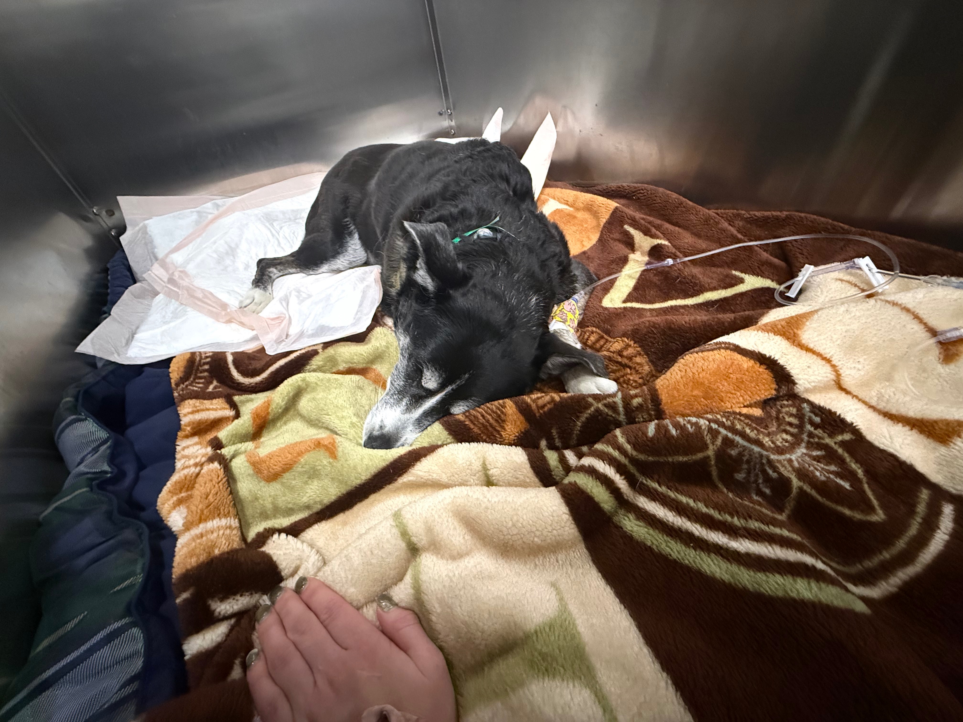 1/13/2025 Luna still has a fever and recovering very slowly from her procedure however she has given mama a few nose kisses, wagged her tail, and has taken a small amount of food. We still have hope that she can recover and come home.