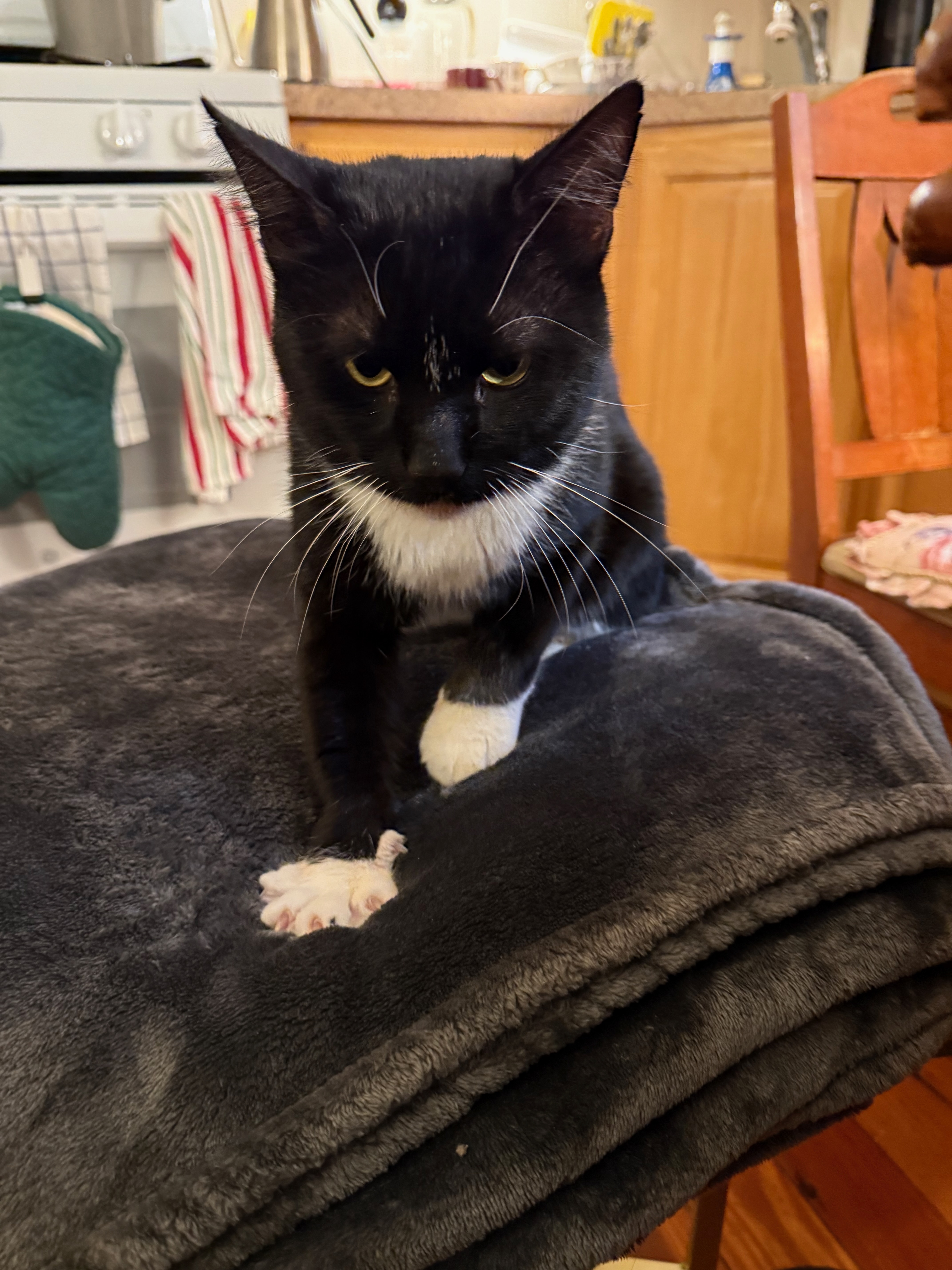 Tommy was born in a backyard in Brooklyn, NY, and was cared for for the first two years of his life by a group of devoted neighbors. When Tommy was two years old, in September 2025, his caregivers contacted me for help getting him and their other backyard cats neutered and spayed. At the vet, we learned the difficult news that Tommy has FIV and FeLV, both chronic, immune-suppressing viruses. Because of the risk to his health, it was not safe for Tommy to keep living outdoors in his backyard home, and his caregivers were not able to keep him inside their own home. Fortunately, friends and neighbors stepped up to provide Tommy with temporary housing, and Tommy has been living safely and happily indoors while we further assess his medical needs and prognosis.