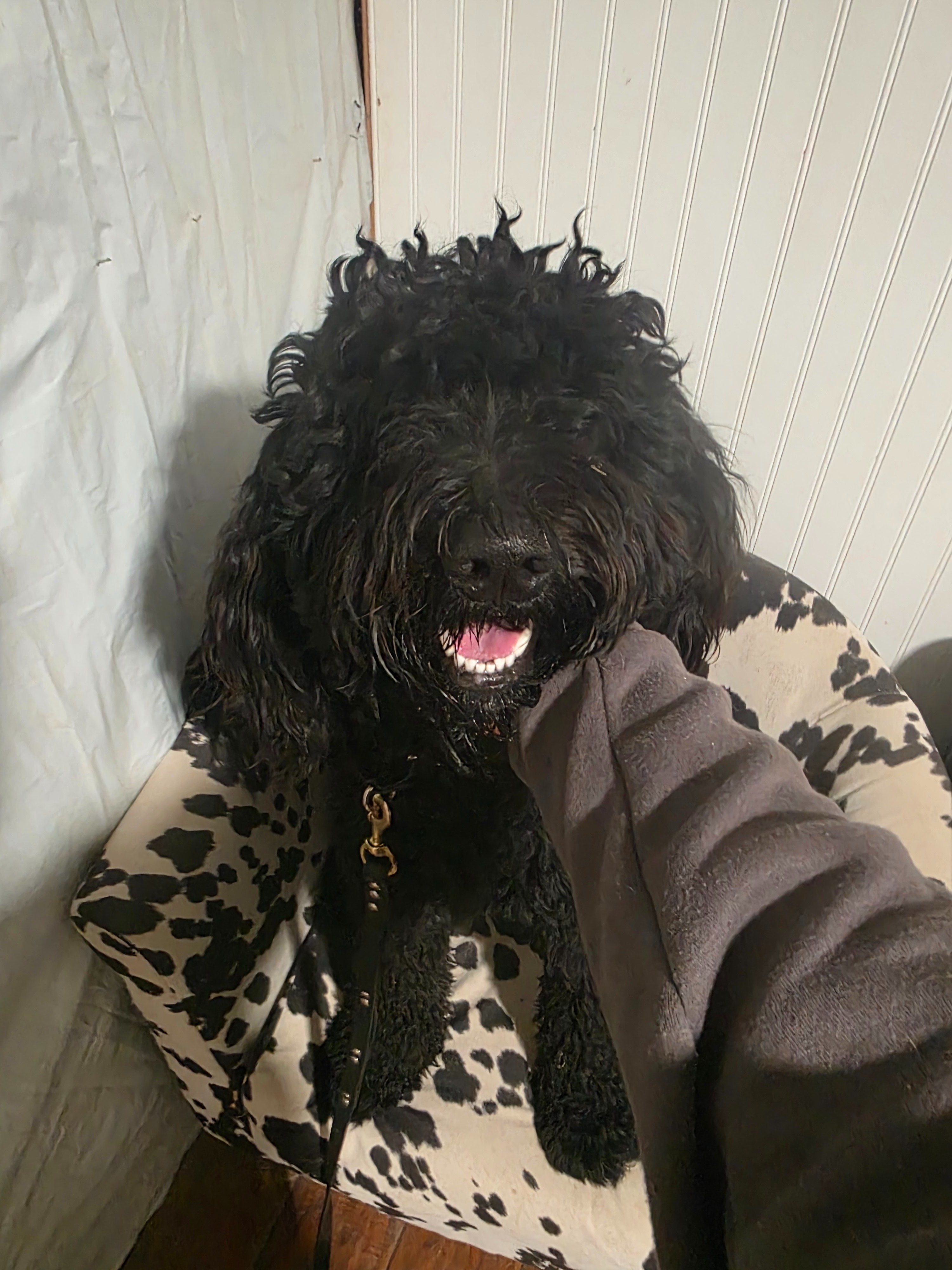 Cooper is a sweet doodle puppy who has already faced more challenges than most dogs his age. He’s almost a year old and has spent much of his young life feeling scared and confused. His mom, who loves him dearly, has been in and out of the hospital, which means Cooper has often been passed from one home to another. This time, when she needed help, Cooper had nowhere to go and arrived with us in pretty rough shape. He clearly lacked consistency in his excersise routine based on energy and fitness level, his coat was matted and dirty, and it was clear he hadn’t received the training or attention he needed. We aren’t sure what kind of vet care he’s had, but he came to us unfixed, without heartworm prevention or testing, and with an unconfirmed vaccine records that even so will likely expire soon based on his age and typical vaccination ages.