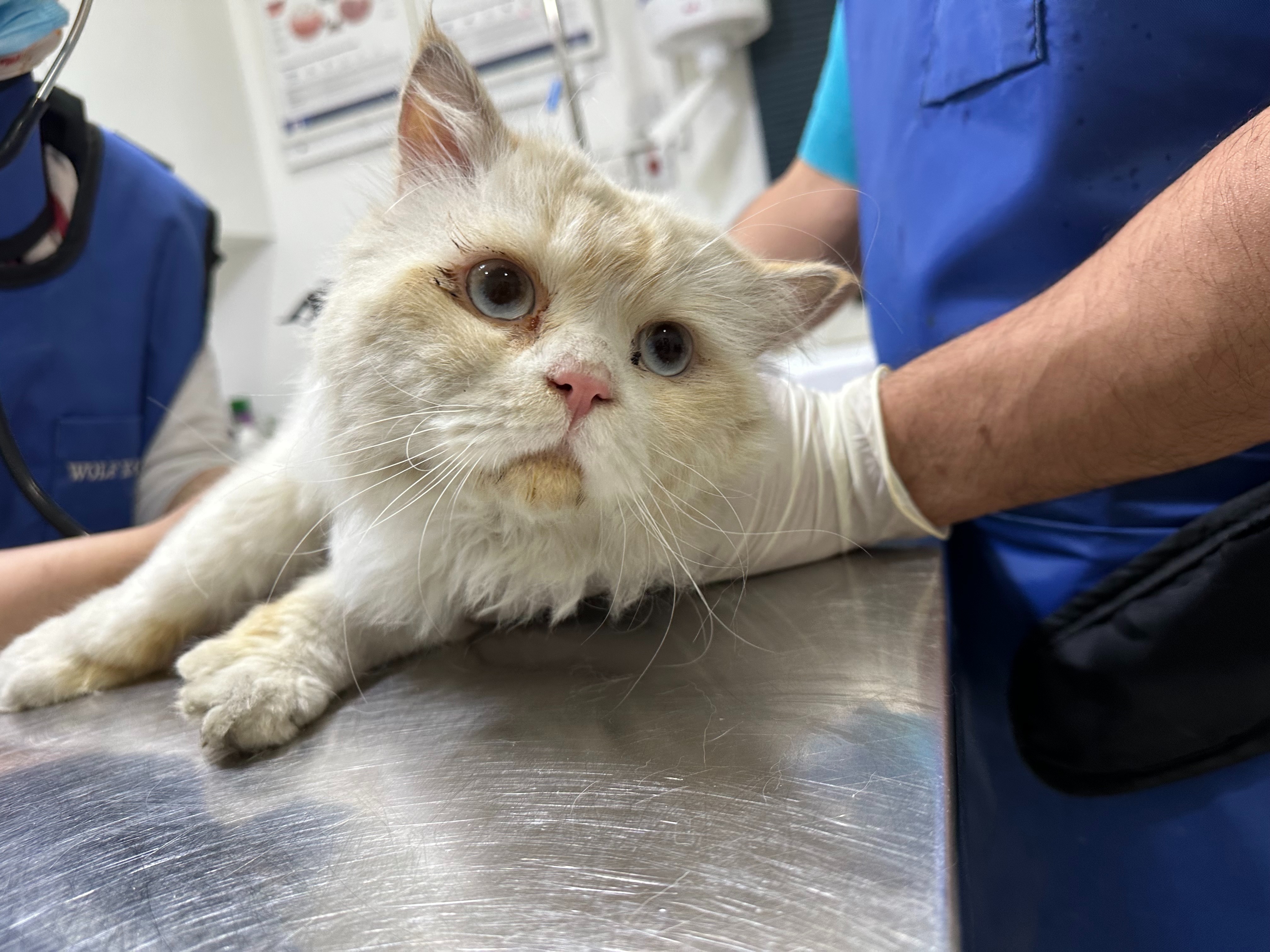 Kibou, F, 3-4yrs, White Persian. Kibou was dumped on the streets by her original owner, and was then looked after by a family who decided to leave Doha when the attacks started. The family surrendered her to me two days before leaving Doha. Kibou is a very beautiful, gentle and sweet cat that really deserves a loving forever home.