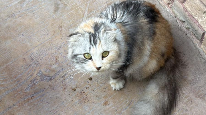 Hope, F, 12m Tri-colour Scottish Fold/Chinchilla Persian mix. Hope was 6 weeks pregnant when discovered in an upscale villa compound , along with her siblings. The compound security guard had been looking out for her and reached out to a fellow rescuer. Hope is extremely friendly and is due 3 or 4 kittens early April. All will be available for adoption.