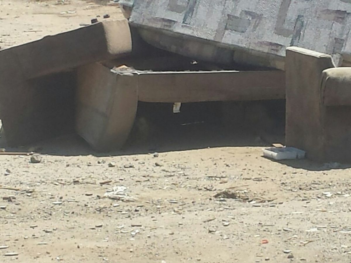 On Thursday, August 10, 2017, I found two stray dogs abandoned in this pile of discarded furniture somewhere near the outer city limits known to be a drop off point for trash and animals. Abandonment of animals is cruel and unlawful but the law can't protect them when they are dumped in the middle of the night somewhere isolated like this location. I fed them on Thursday and gave them fresh water.