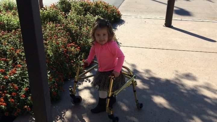 Hope is currently receiving one- hour of physical therapy and speech a week, occupational therapy quarterly and she has a teacher once a month.  She is now 2 ½ and is experiencing speech delay and is unable to walk without walking sticks or a walker.  I was fortunate enough to enroll Hope into a 3-week intense therapy program in Los Angeles in April, 2015.  It was an amazing experience for both of us.  Hope is now able to use walking sticks to get around, and is so close to walking, that enrolling her in a second 3-week therapy in October is my goal.  Unfortunately, a second time is not covered by my insurance and obviously the stay in LA and my pay are not covered for the 3 week, 5 days a week, 4 hours a day therapy.  The therapy and lodging have to be paid ahead of time.