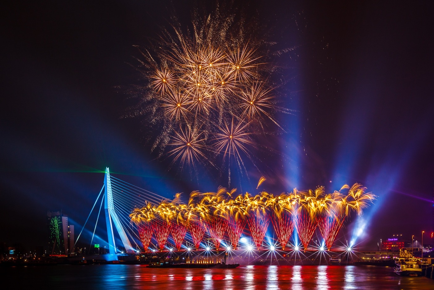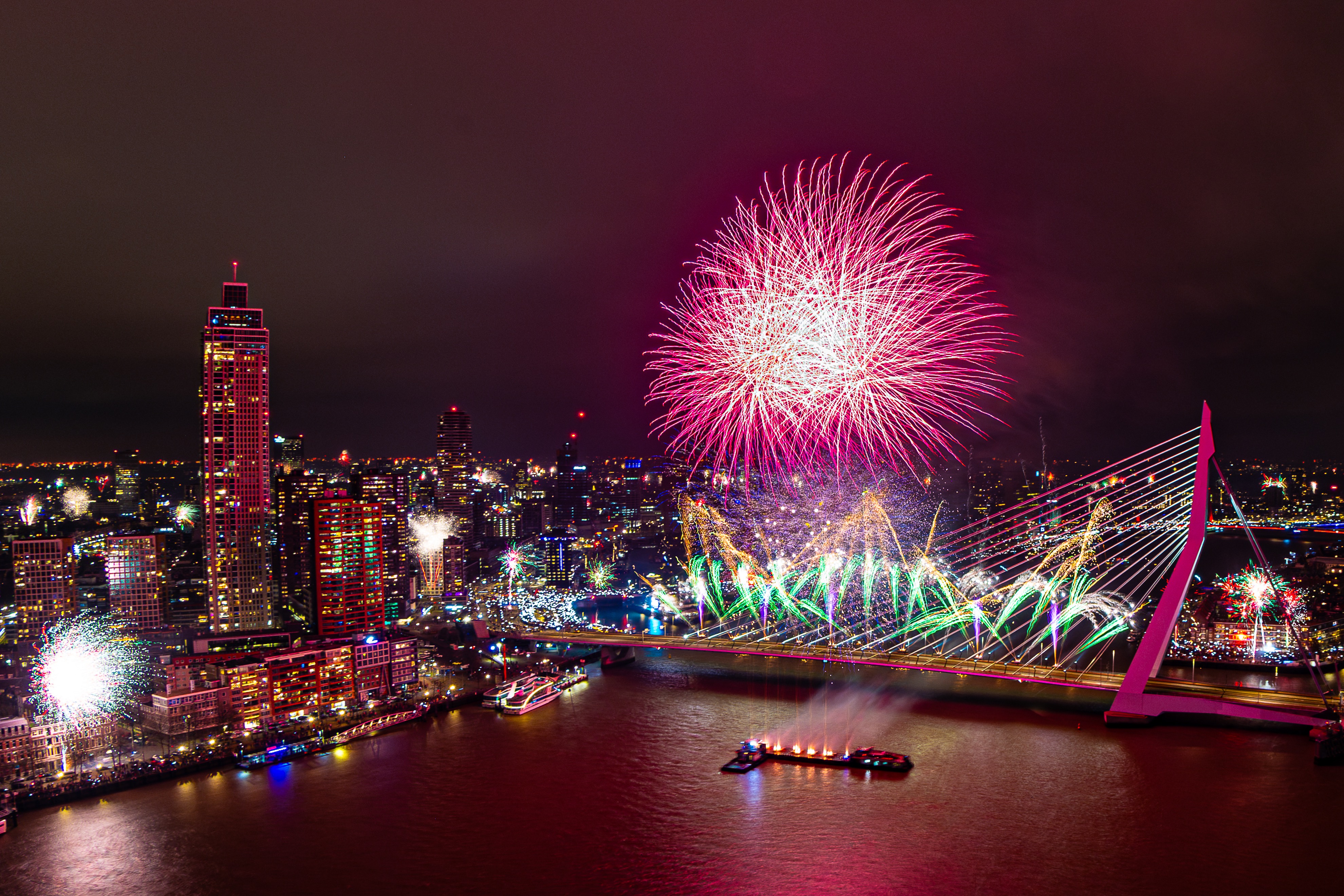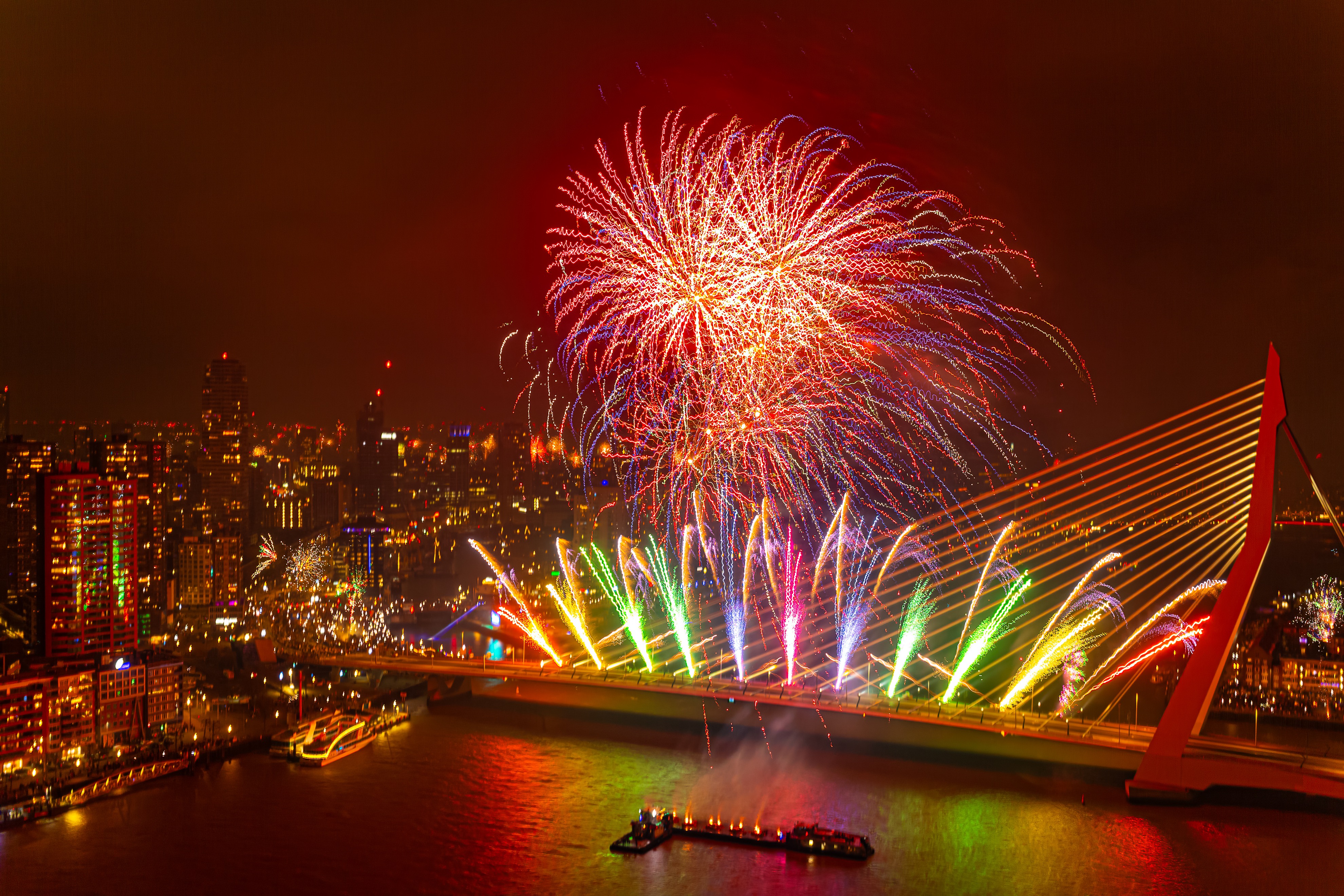 Het Nationale Vuurwerk op de Erasmusbrug dreigt te verdwijnen.