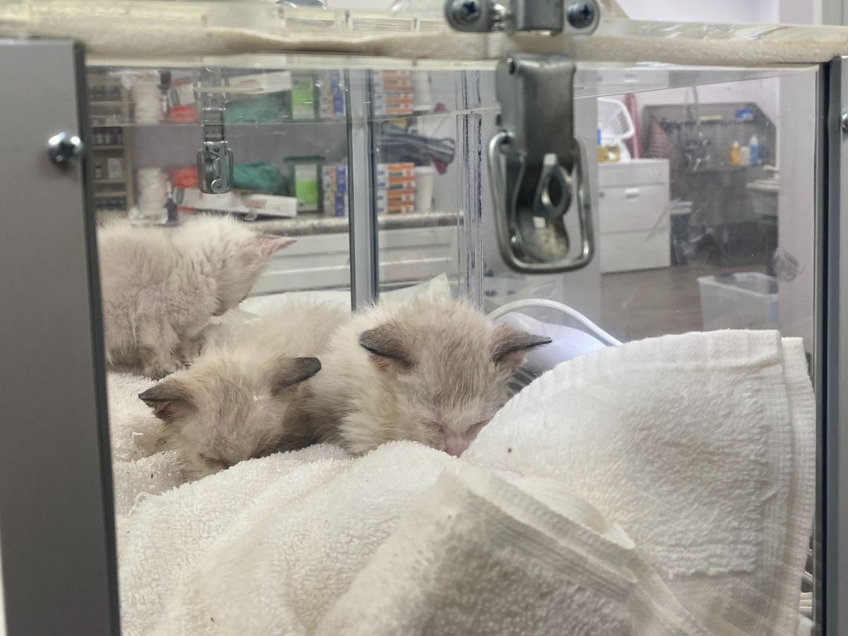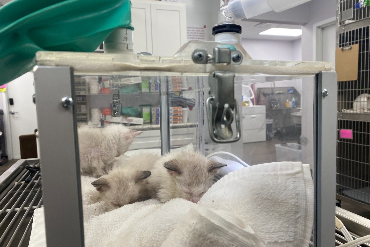 That is why its is urgent that we come together now, in his time of need. Early this morning Mr. Pitts got a call that his house had suffered a fire. A neighbor noticed smoke coming from his home and by the time the fire department arrived, flames were coming from the door. The smoke and flames not only cause damage to his home, but also his heart. Being an animal advocate and local rescuer himself, the animals in his home were in immediate danger. Three of his elderly cats were able to escape, 10 were pulled out by fire rescue (3 of those being neonates with their mother), and 2 perished in the fire. Luckily the fire rescue workers were quick on their feet and formed an assembly line to get the 10 from the house immediate oxygen treatment and cooled down. Mr. Pitts brought the 10 cats and kittens to Highlands Veterinary Hospital for treatment, including oxygen therapy, antibiotics, eye ointment, etc. He was able to locate the three elderly cats as well, so we currently have 13 kitties receiving treatment and monitoring for smoke inhalation and fire exposure. Luckily, there are no burns to the skin, but the damage to their lungs is unknown.
