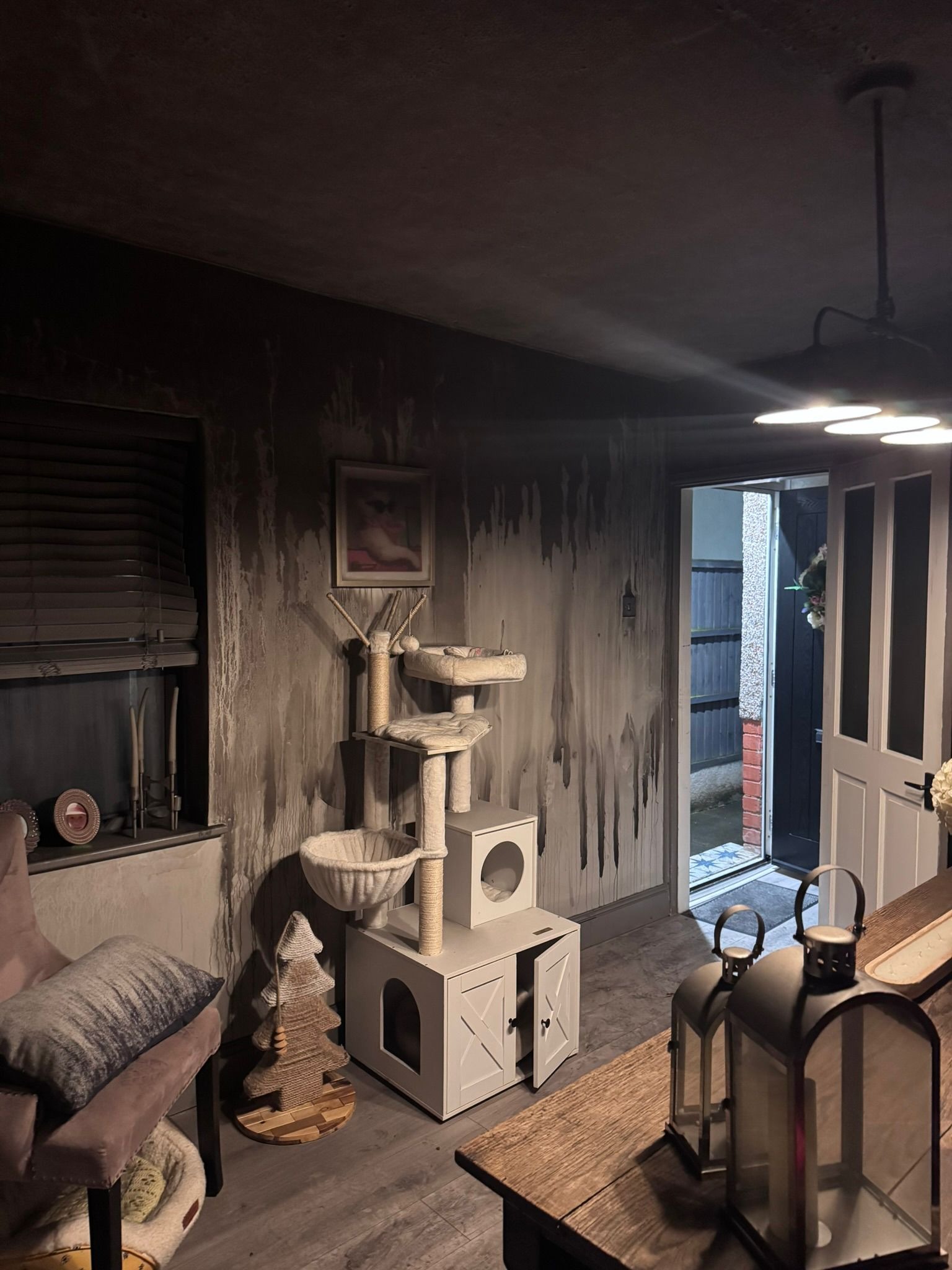 Friday night at 11:30pm my older cousin who is like a second mum to me was woken up by her younger daughter shouting 'mum there's a fire, the house is on fire'. They had 7 cats (who are all safe thank god) in the house and all their belongings are either burned or smoke damaged . They have worked so hard to build a lovely home for themselves and love to help others by rescuing cats. My cousin has been going through so much medically at the moment and i