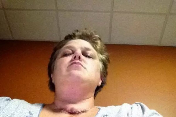 I again scheduled an appointment with my oncologist. By then, I also had developed a lump under the right side of my jaw. Again, I asked him for a PT Scan. I told him about the biopsy too. He refused. He said I just had a swollen saliva gland and he would see me next month. My mom was with me that day. She insisted that I contact the Cancer Treatment Centers of America. I got on line and chatted with them. Within 2 days I was purchasing 2 tickets to Atlanta to be evaluated by their doctors in less than 2 weeks. After testing there and another biopsy of a lymph node between my lungs, I was diagnosed with Pappillary thyroid cancer of at least the right lobe of the thyroid that had metastasized (spread) to my lymph node between my lungs. That lobe was now 3 times the size that it should have been. No wonder my acid reflux had just disappeared! In 31 days my left thyroid lobe had grown to be the same size as the right. I had a complete thyroidectomy on October 18, 2013. I went through iodine radiation in January of 2014. I was quarantined from my family for 3 weeks.