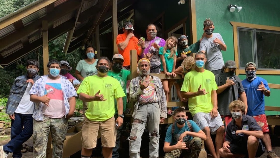 Ma Ka Hana Ka Ike building program crew after building a kupuna cottage.