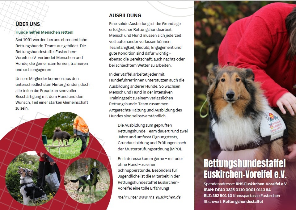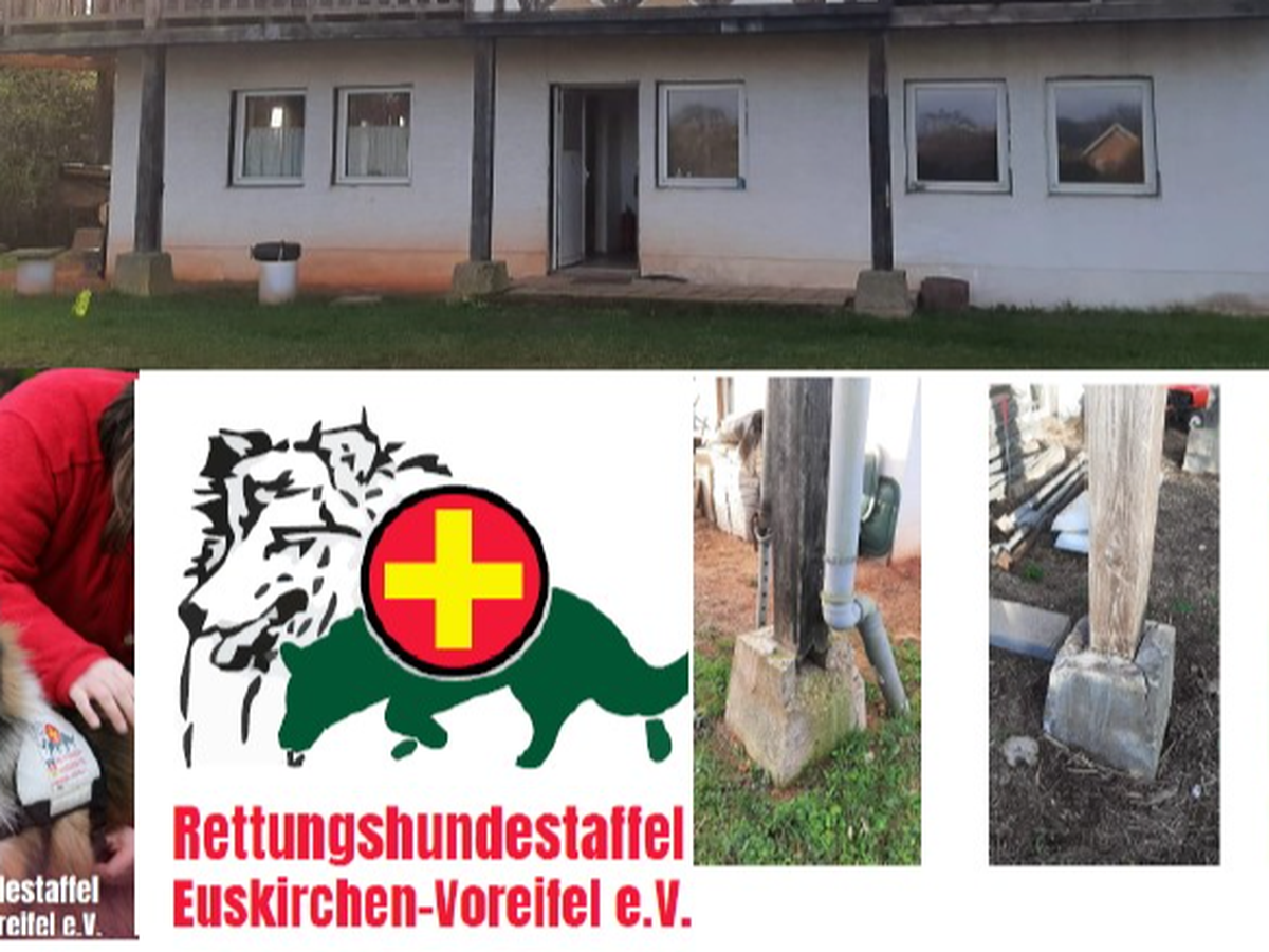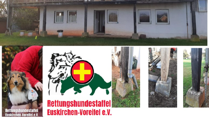 Hallo , ich bin Ingrid und bin seit 6,5 Jahren mit meiner Mischlingshündin in der Rettungshundestaffel Euskirchen-Voreifel e.V. - wir sind durch Corona sehr gebeutelt und haben fast alle Mitglieder verloren - vor allem unsere Jugendstaffel - dann kam auch noch die Flut und unser Gelände hat sehr gelitten - inzwischen haben wir wieder neue Mitglieder bekommen und auch die Jugendstaffel nimmt wieder Fahrt auf! Wir machen im Grunde alles selber , aber nun braucht unser Vereinsheim dringend neue Pfosten, da die alten durch die Flut komplett weggespült wurden !