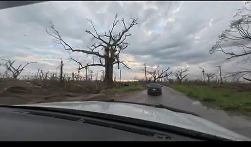 He described BARREN landscapes, trees with no leaves, roads turned to river beds.... and said that at some points, especially between Cambridge and Retrieve in St. James, he had to drive through bodies of water to get to Catadupa.
