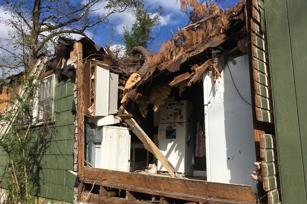 These were the first words of the insurance claims agent upon seeing the extent of the damage to Deb's home. A large tree fell during the storm, destroying her kitchen, adjacent laundry room and disrupting the wiring to most of her house. Several other trees on her property were blown over or snapped, indicating a possible microburst or localized tornado.