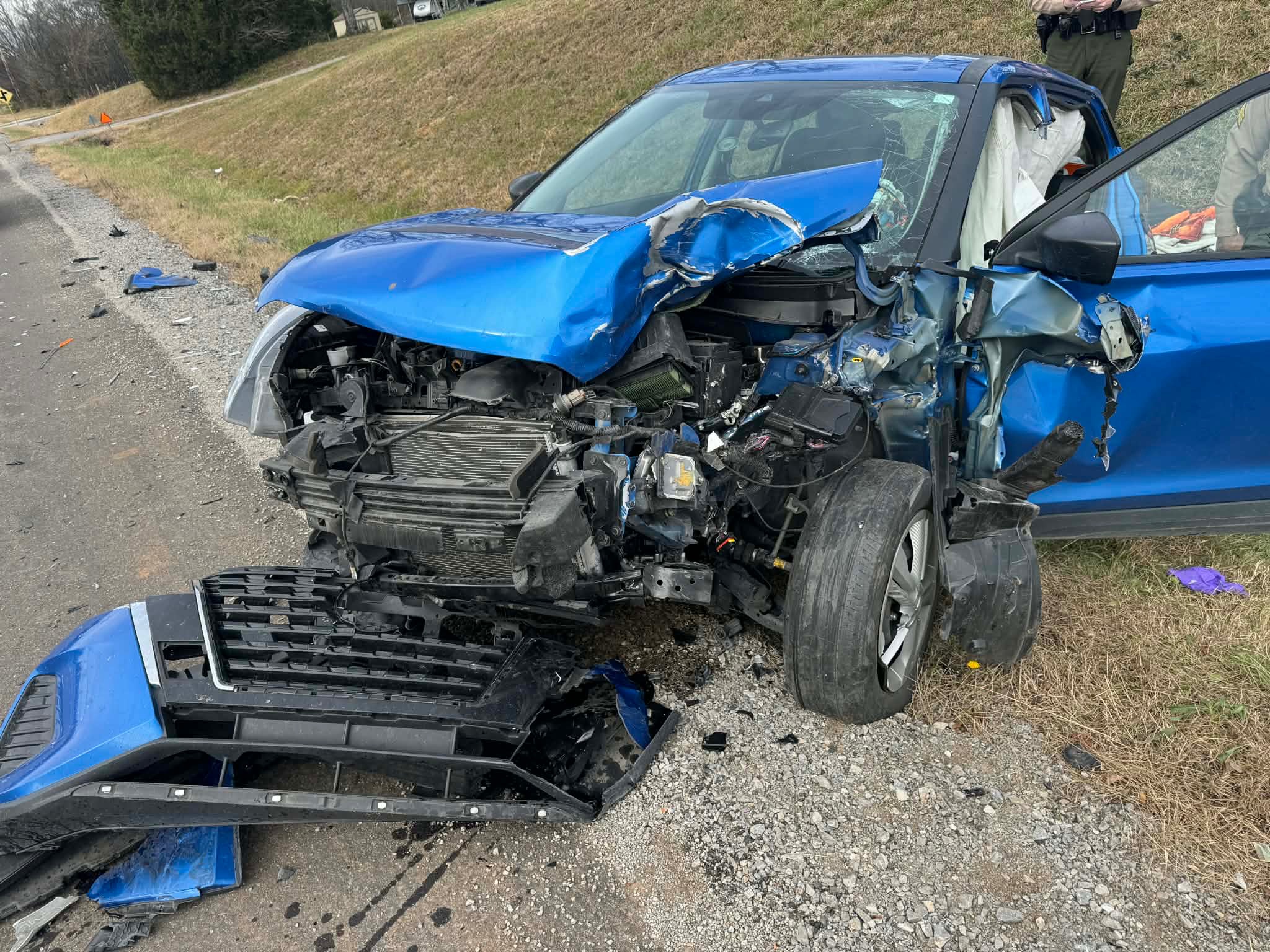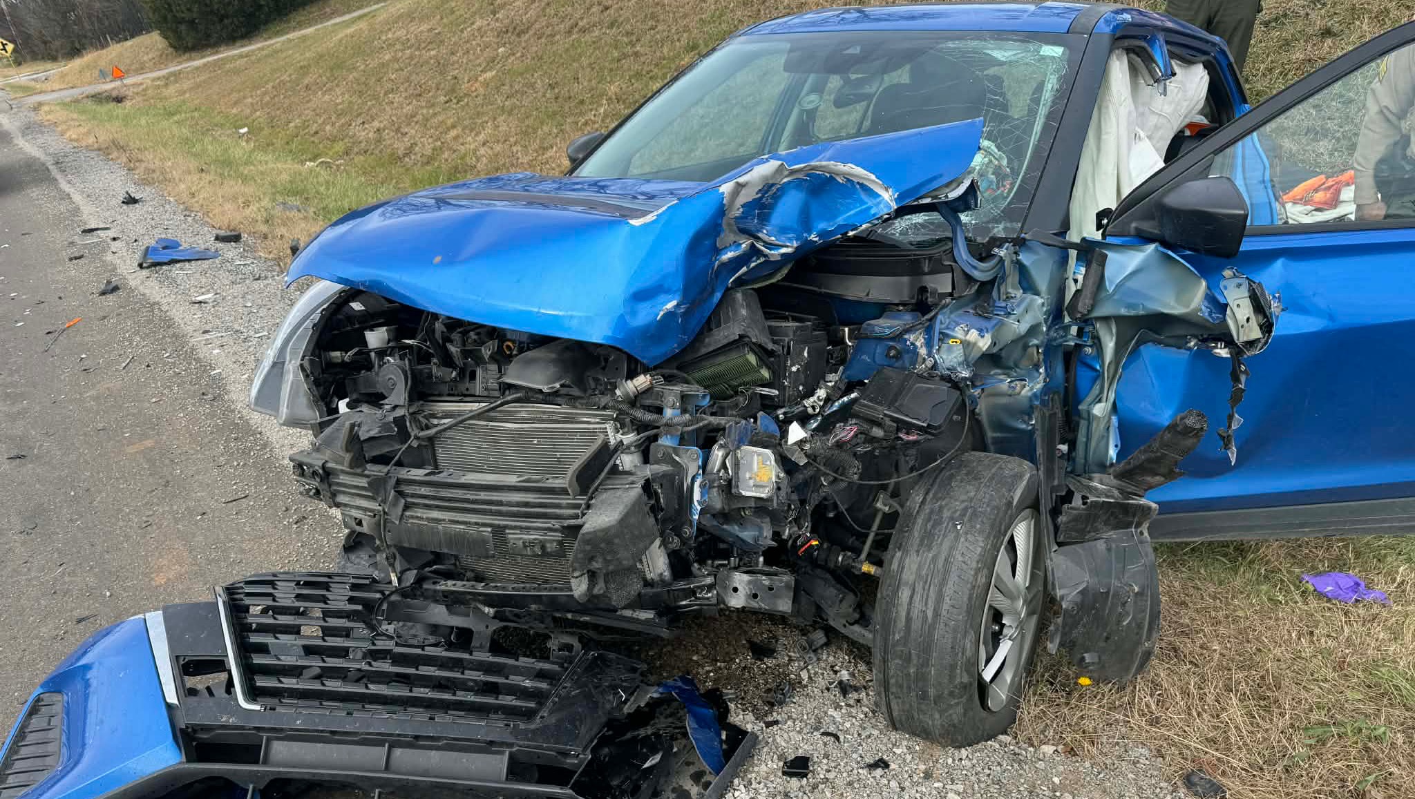 The entire front end of my vehicle was destroyed — metal twisted, the engine crushed, airbags deployed, and debris scattered across the road. Looking at that wreck, I can only thank God for sparing my life. Even though I walked away injured, He held me in His hands.