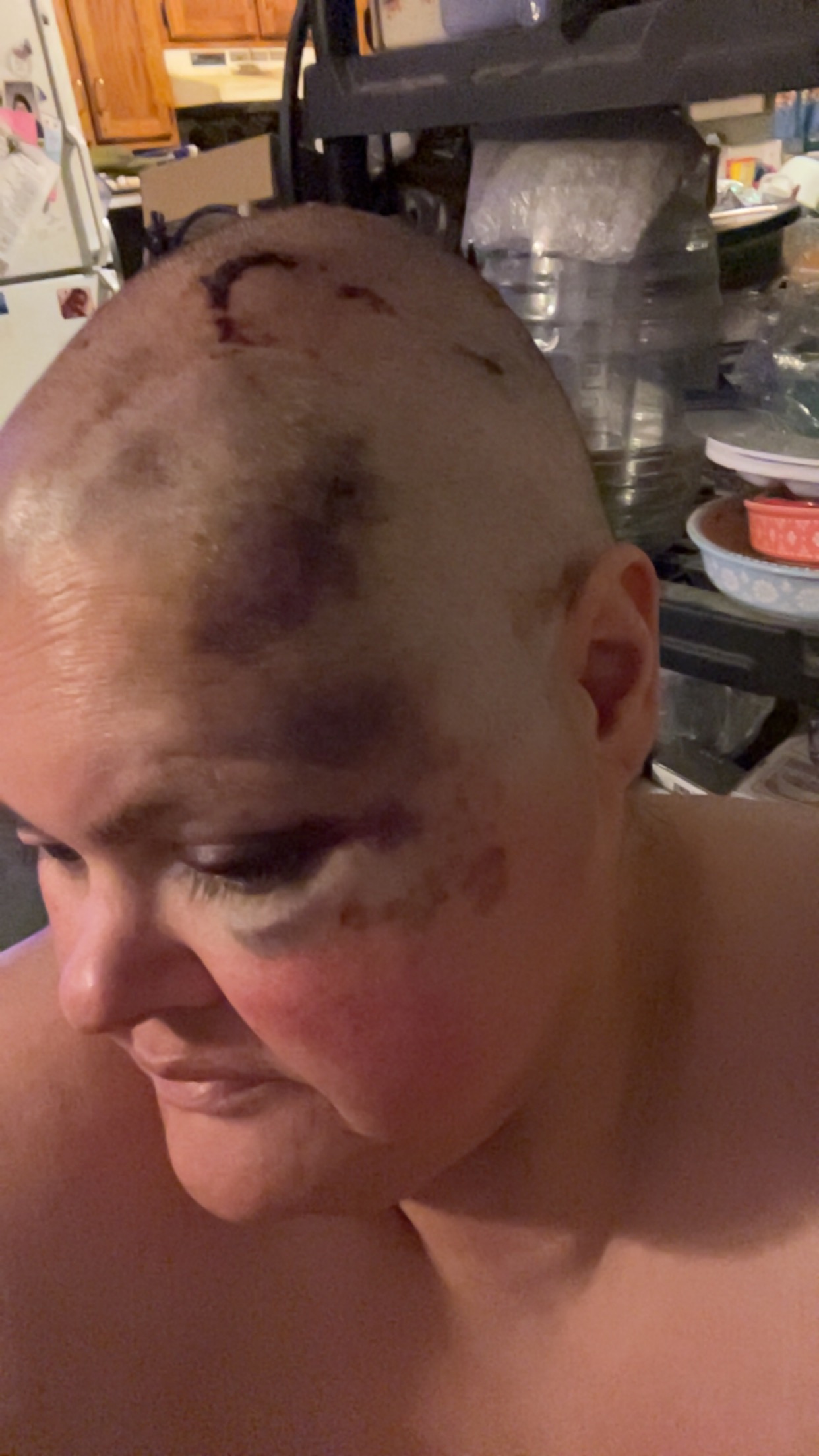 • Multiple cuts, bruises, and heavy trauma