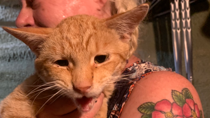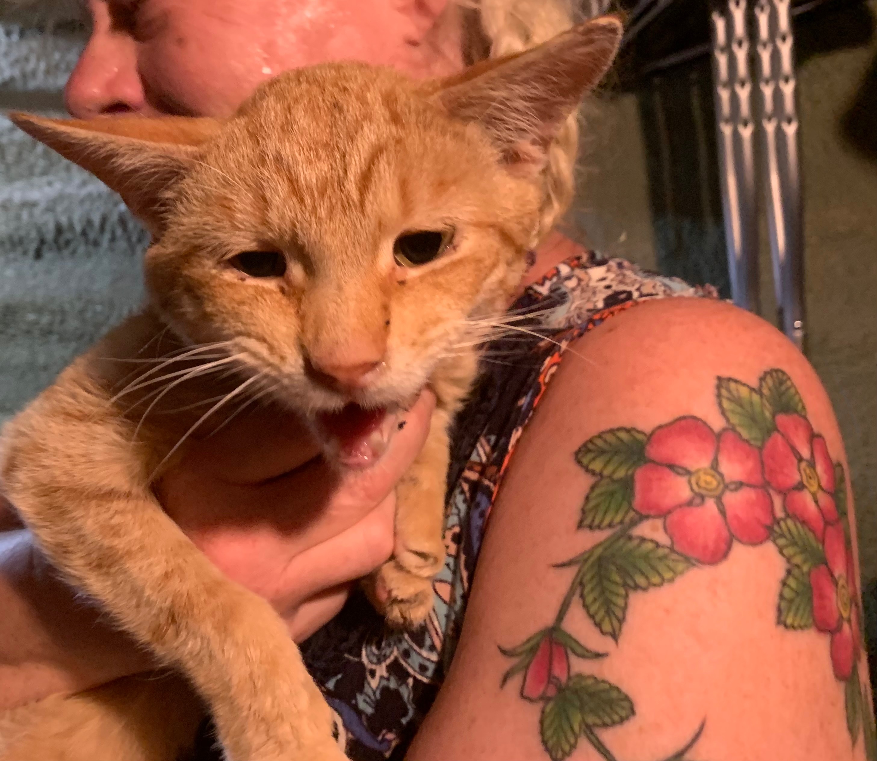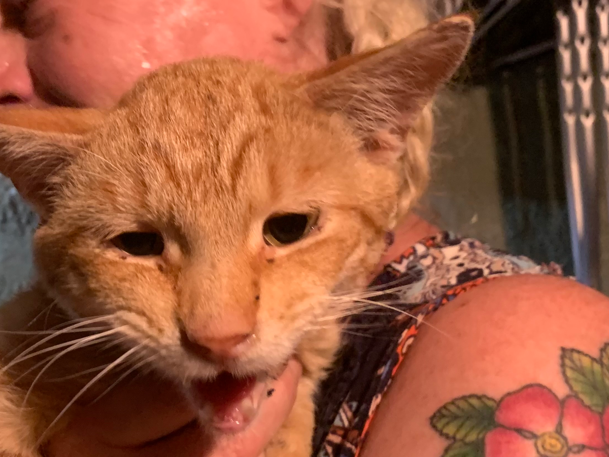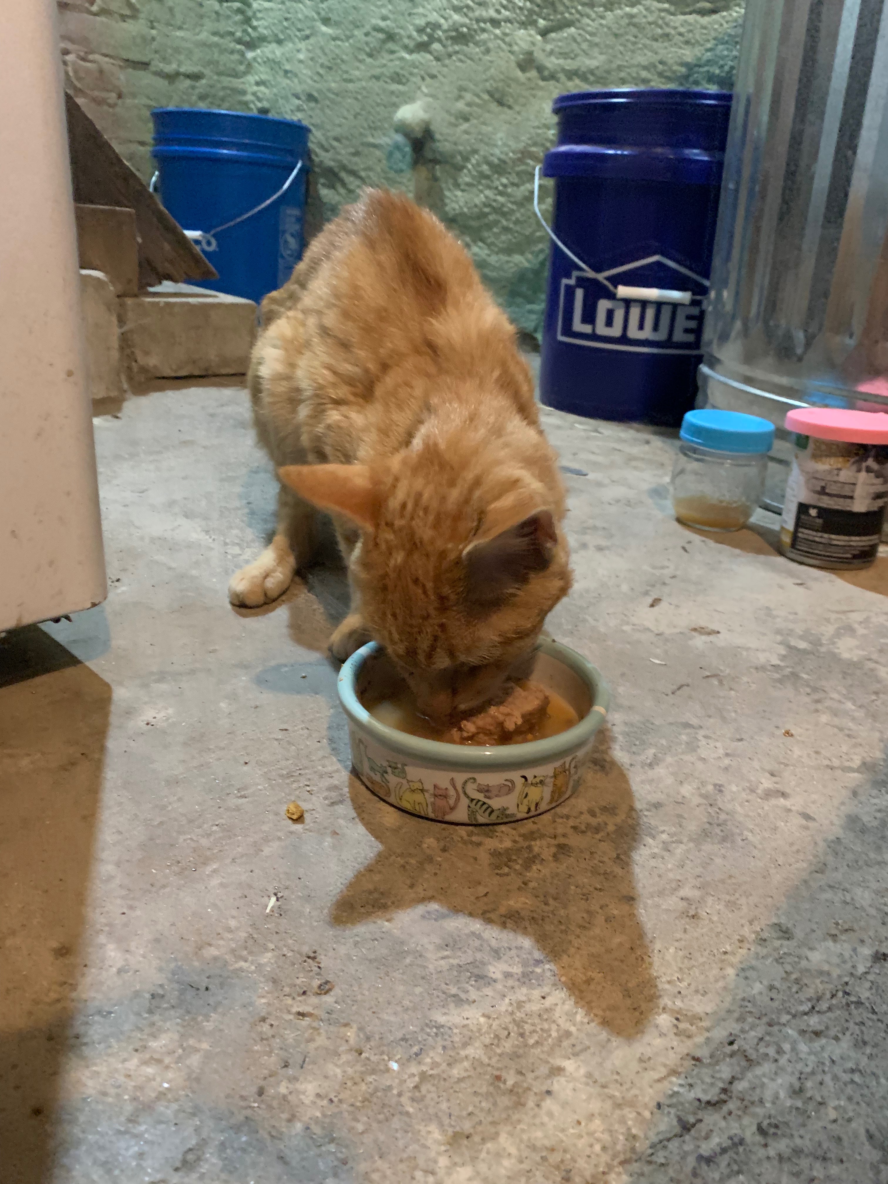 I-80, a scrawny but talkative young guy, sat at the edge of the exit ramp in the dark, meowing loudly as the next car slowed. My friend GC pulled over to help him. He is currently hanging out in GC's basement (she has a house full of other animals), excited to have access to food and water, even more excited to have visitors who will pet him and listen to his songs. He is here asking for crowdsourced help; his forelegs and one shoulder appear malformed, a birth defect or healed injury. We want him to get the care that he needs---dewormer, a combo test for FELV/FIV, x-rays, neuter op and vaccinations. Please consider contributing, no amount is too small, to this little guy's future!