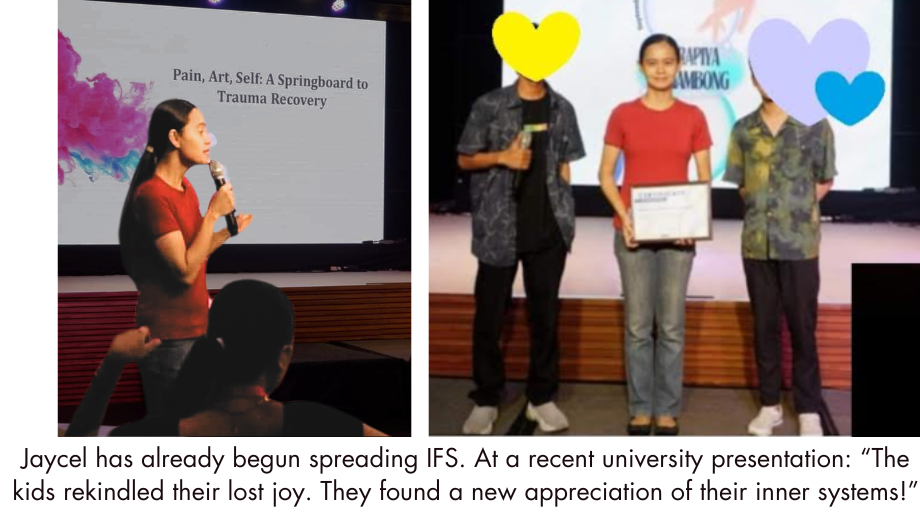 And Jaycel needs us to become the Philippines' first IFS therapist. If you love the idea of IFS therapy spreading worldwide, consider sending a donation of $10, $20 or even $200+. Every dollar makes a difference.
