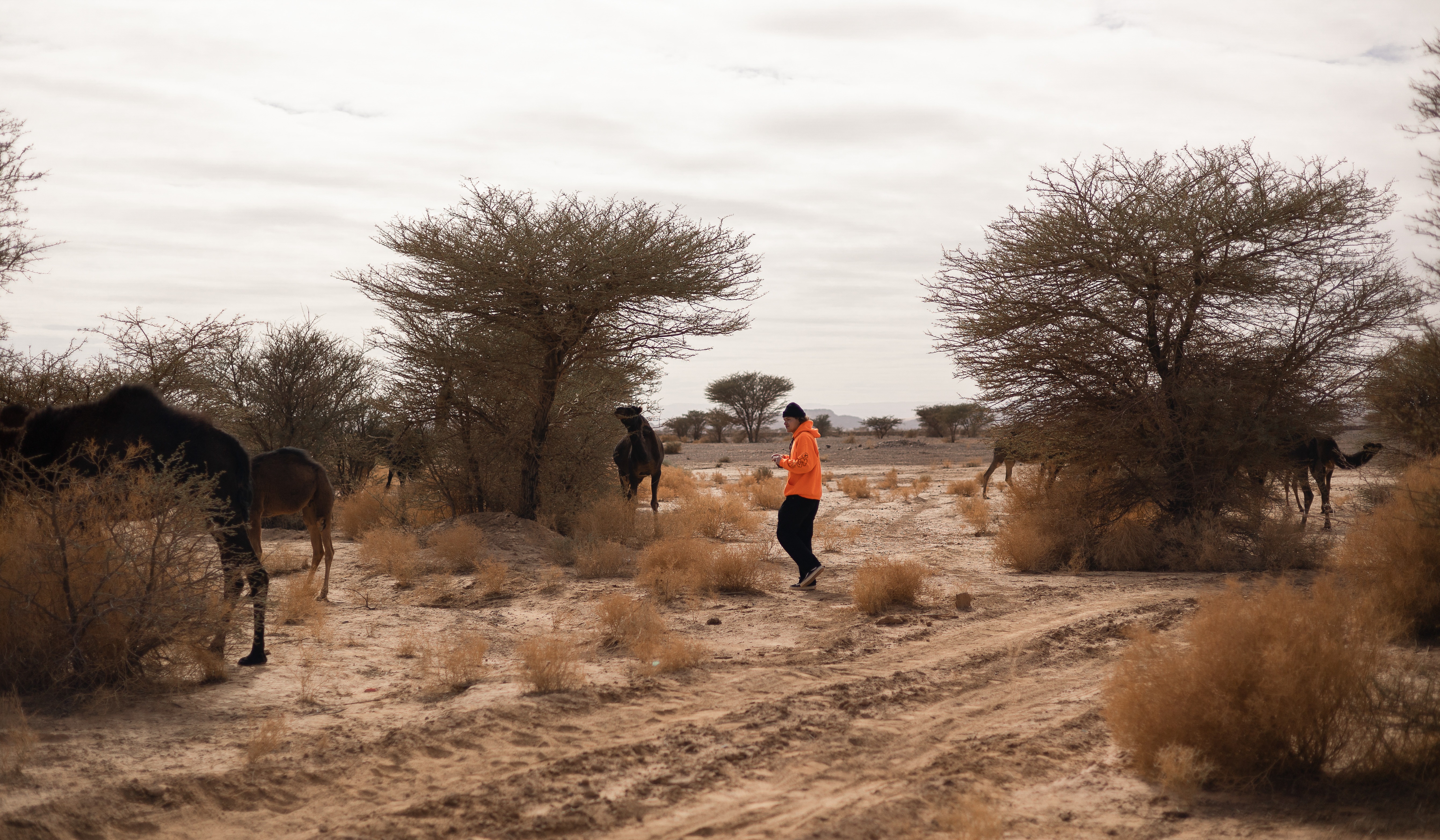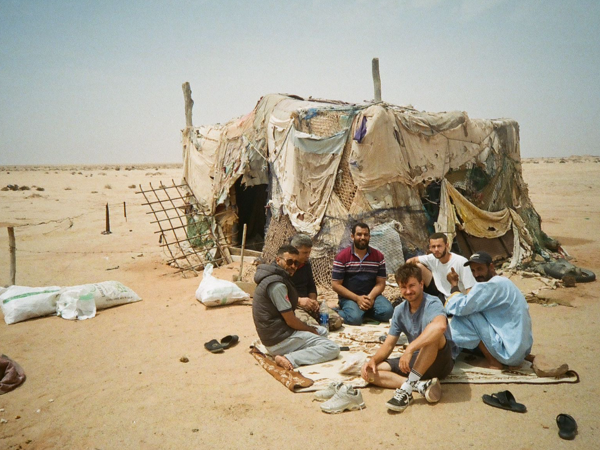 Rayane et Colin avec des chameliers lors d'une expédition, Clément est derrière l'objectif cette fois!