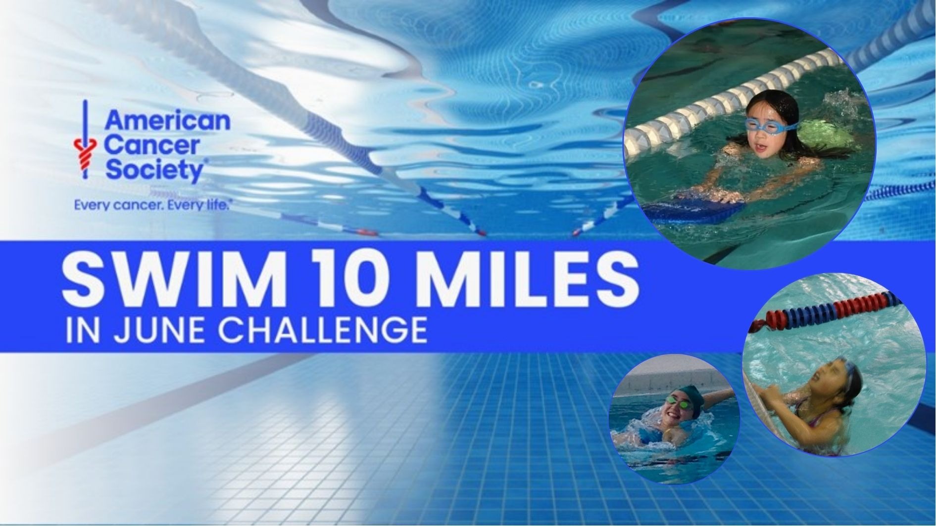 This June, I'm diving into a virtual swim challenge: to swim 5 miles to help the American Cancer Society (ACS) fight for a world without cancer. Cancer has touched so many lives, and I’m swimming to help fund ACS’s life-saving research, patient programs, and support services.