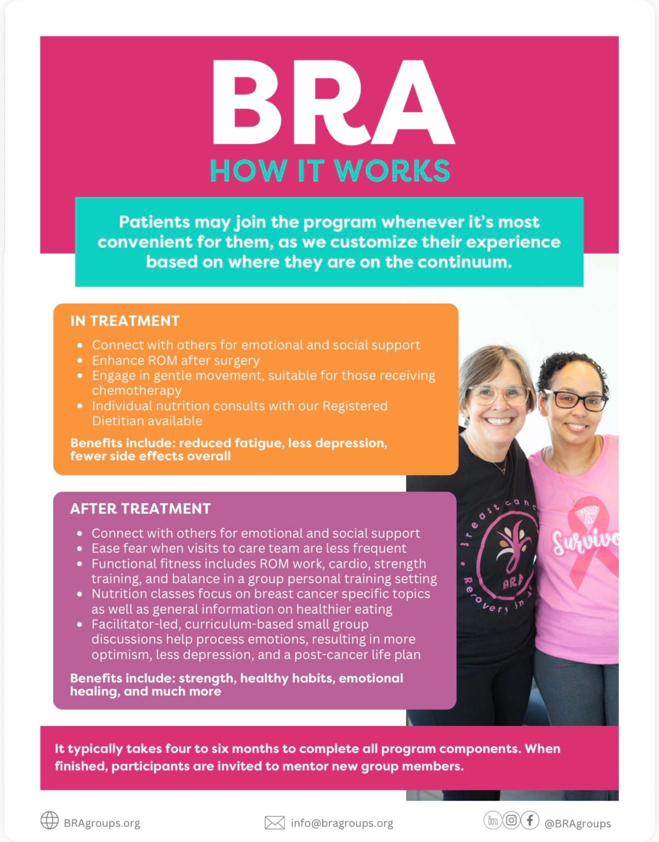 The BRA Program has been a lifeline for my mom. When she was first diagnosed, everything felt overwhelming and isolating. Through this program, she found more than just guidance—she found a community of women who truly understood, offered encouragement, and became like family. Their support has given her strength during her hardest days and hope for the future.