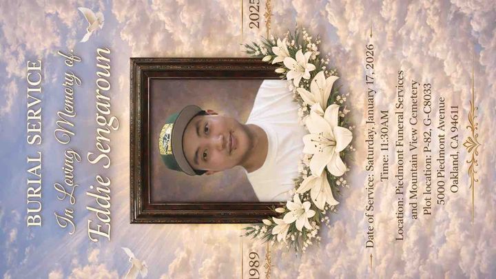 EDDIES BURIAL SERVICE IS JANUARY 17th at 11:30 at 5000 PIEDMONT AVE. OAKLAND