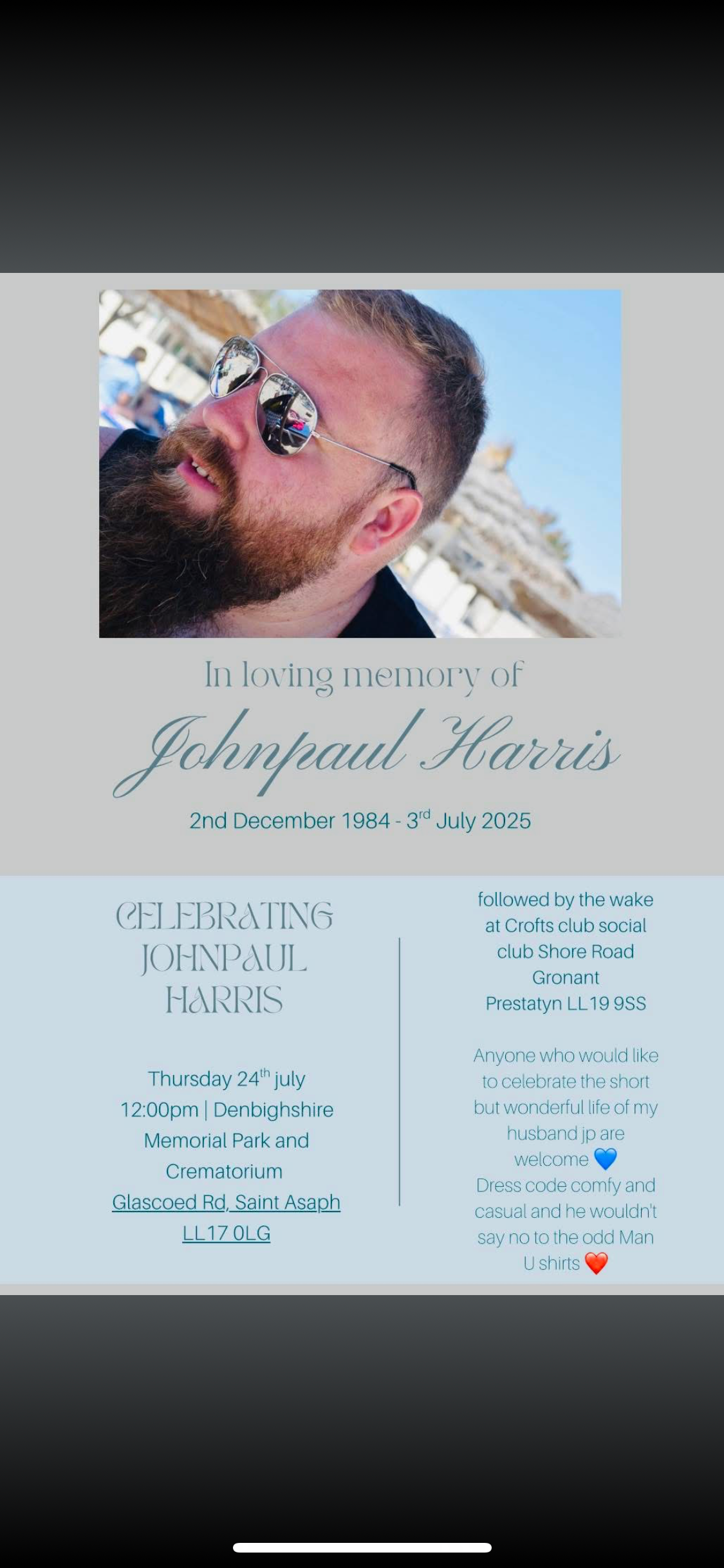 This as been one of the hardest times of our lives. Jp sadly passed away suddenly on the 3rd of July.