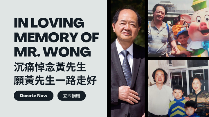 我們由衷感謝您慷慨解囊。您的善意將會幫助我們銘記黃先生,並為他的家人提供急需的幫助。請您與我們一同伸出援手,願黃先生一路走好!