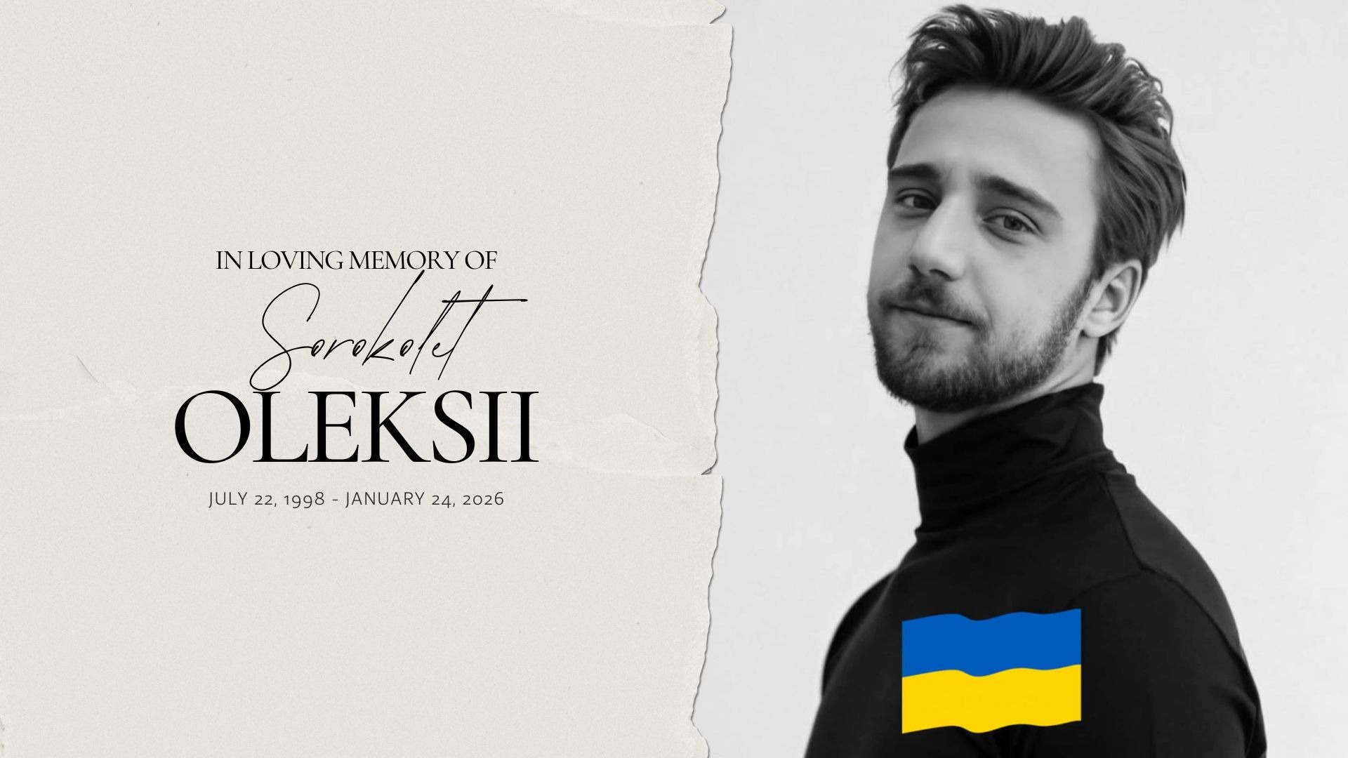 With deep sorrow, we share that Oleksii Sorokolet, born on July 22, 1998, went to be with the Lord on January 24, 2026, at the age of 27.
