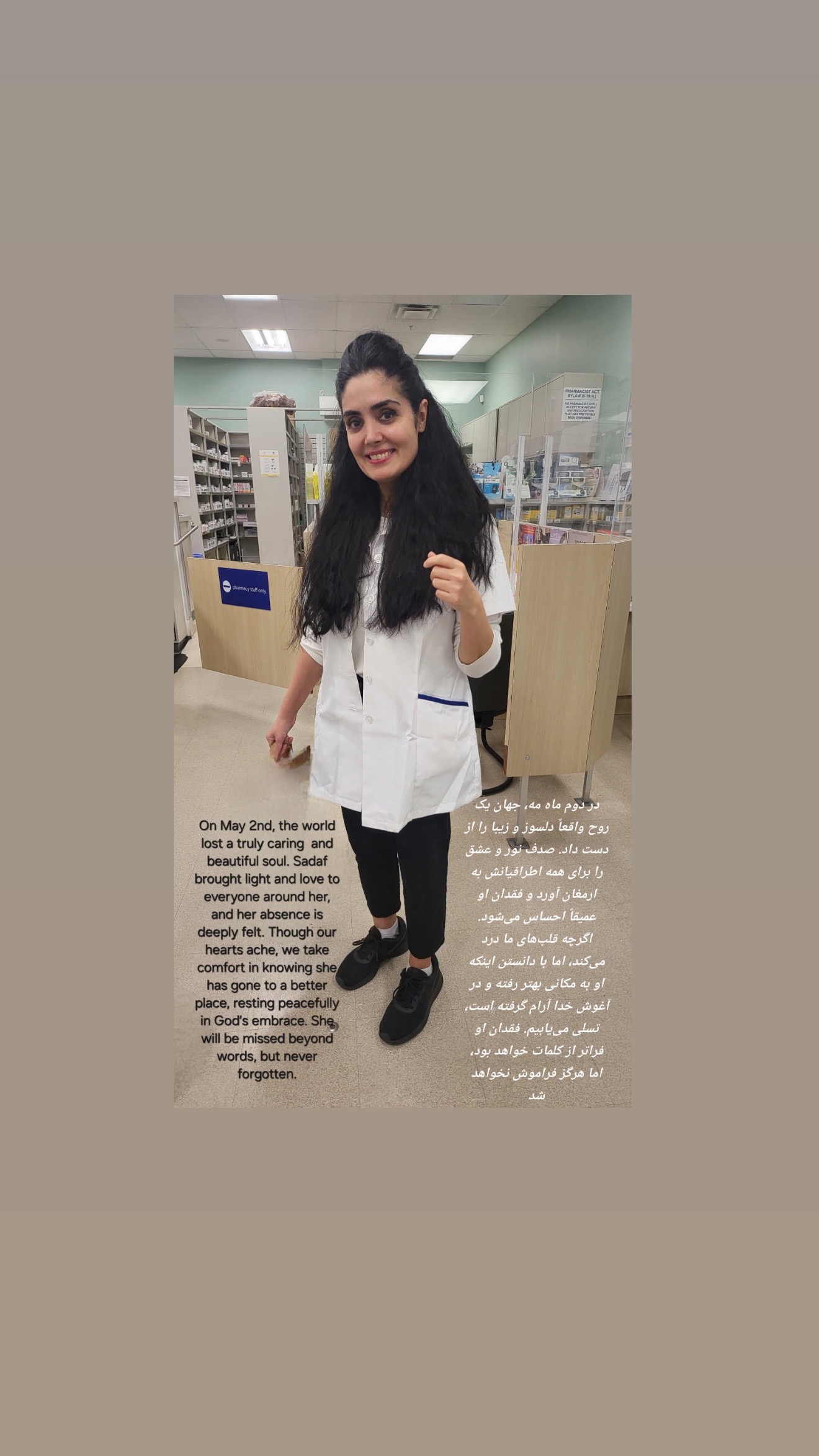 It is with deep sadness that we share the passing of our beloved Sadaf Lajevardi, who left us unexpectedly on May 2nd, 2025. Sadaf was a kind, compassionate, and deeply cherished member of our community. Her warmth, generosity, and vibrant spirit touched everyone who knew her.