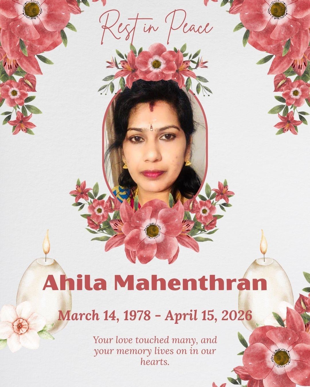 In Loving Memory of Ahileswary Mahenthran