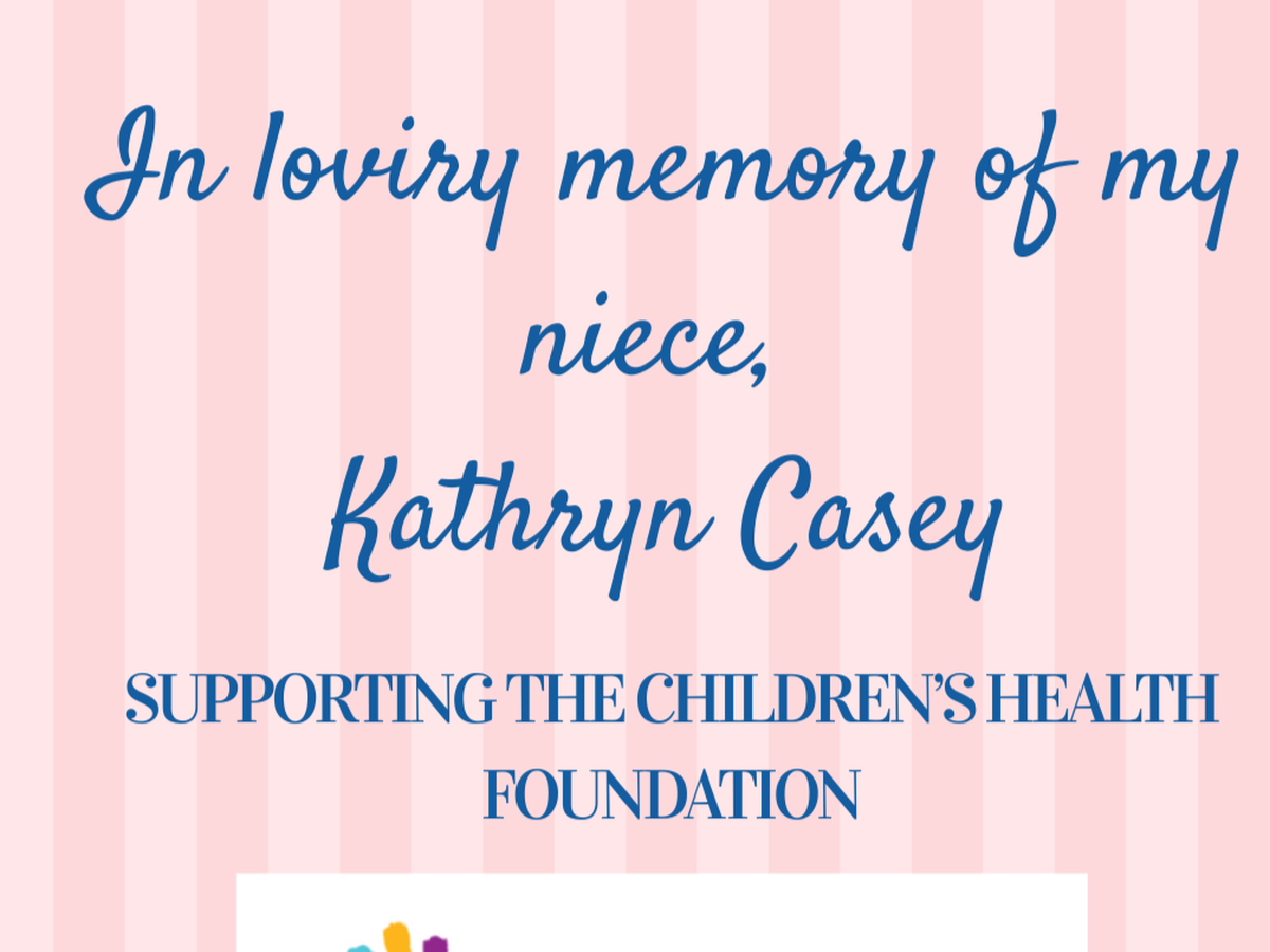 Children's Health Foundation in honour of my late niece, Kathryn Casey, who's short life was spent in Temple Street Children's Hospital, cared for by the amazing doctors and nurses there. This year she would have been 15 years old and I would have been double her age, so it seems poignant.