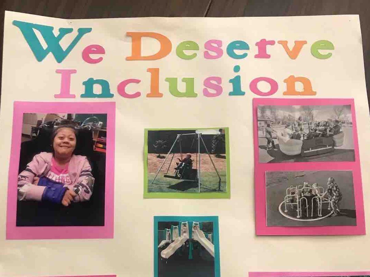 So the kids asked how she could play with them and started researching accessible playground equipment.